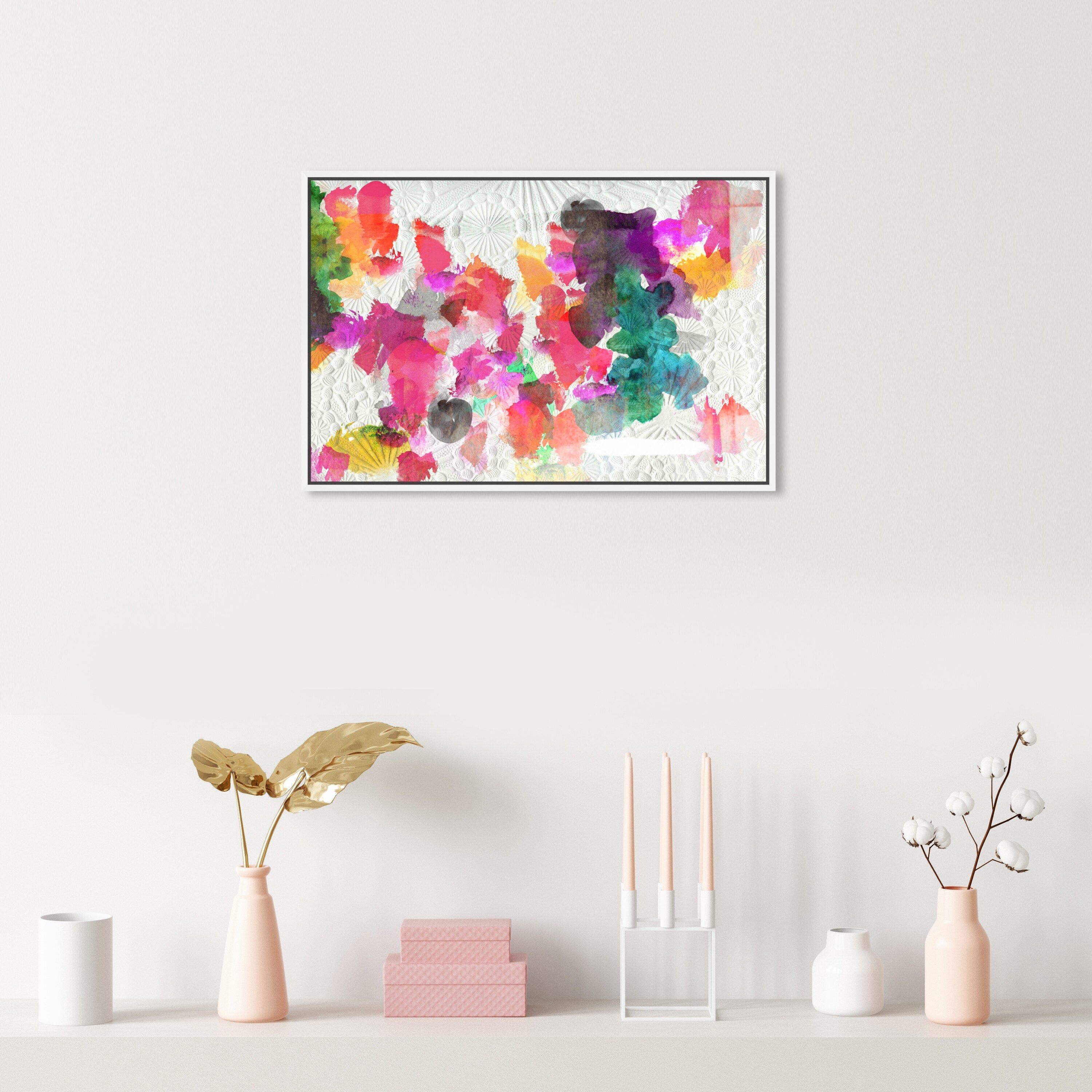 Oliver Gal 'Inside Her Eyes Horizontal' Abstract Wall Art Framed Canvas Print Paint - Pink, Green
