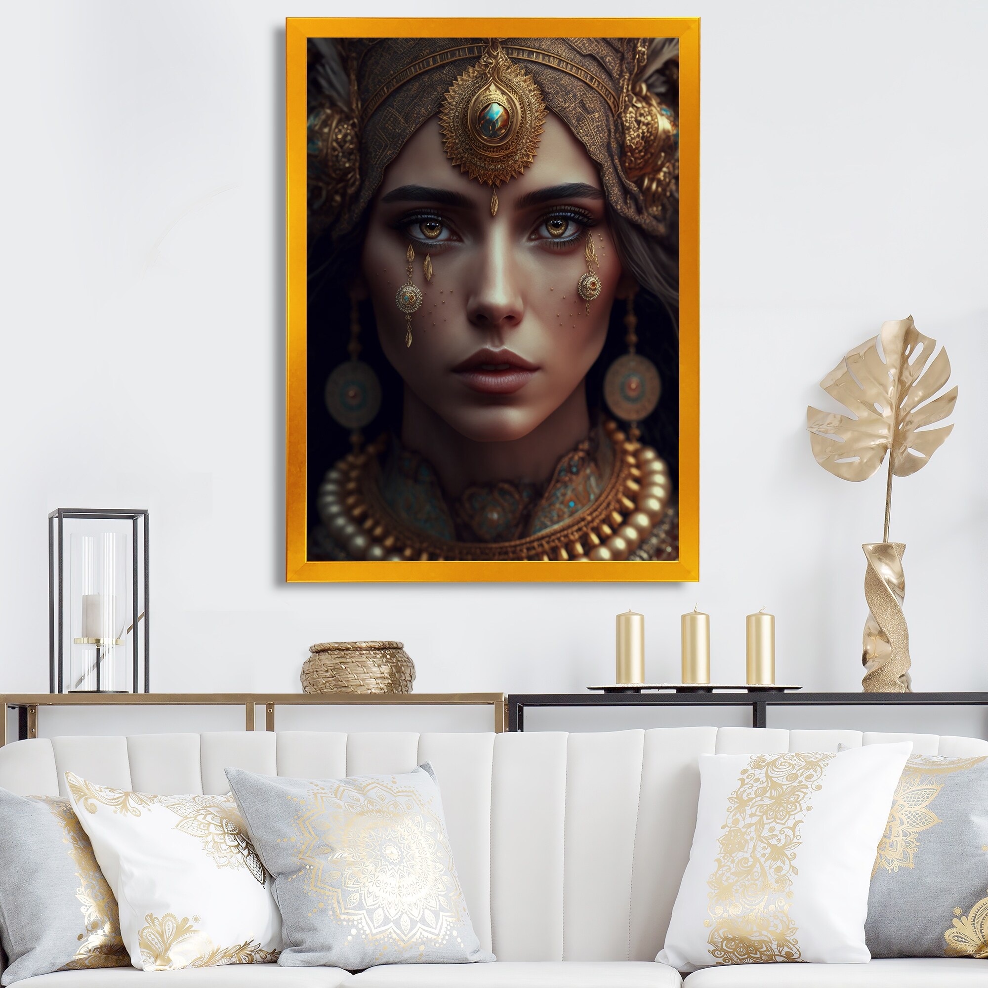 Designart "Bohemian Woman With Blue Eyes VIII" Boho Woman Framed Canvas Wall Art Print