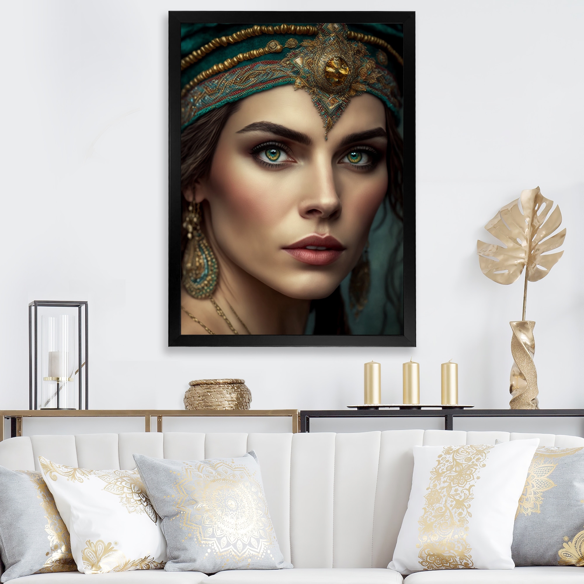 Designart "Bohemian Woman With Green Eyes I" Boho Woman Framed Wall Decor