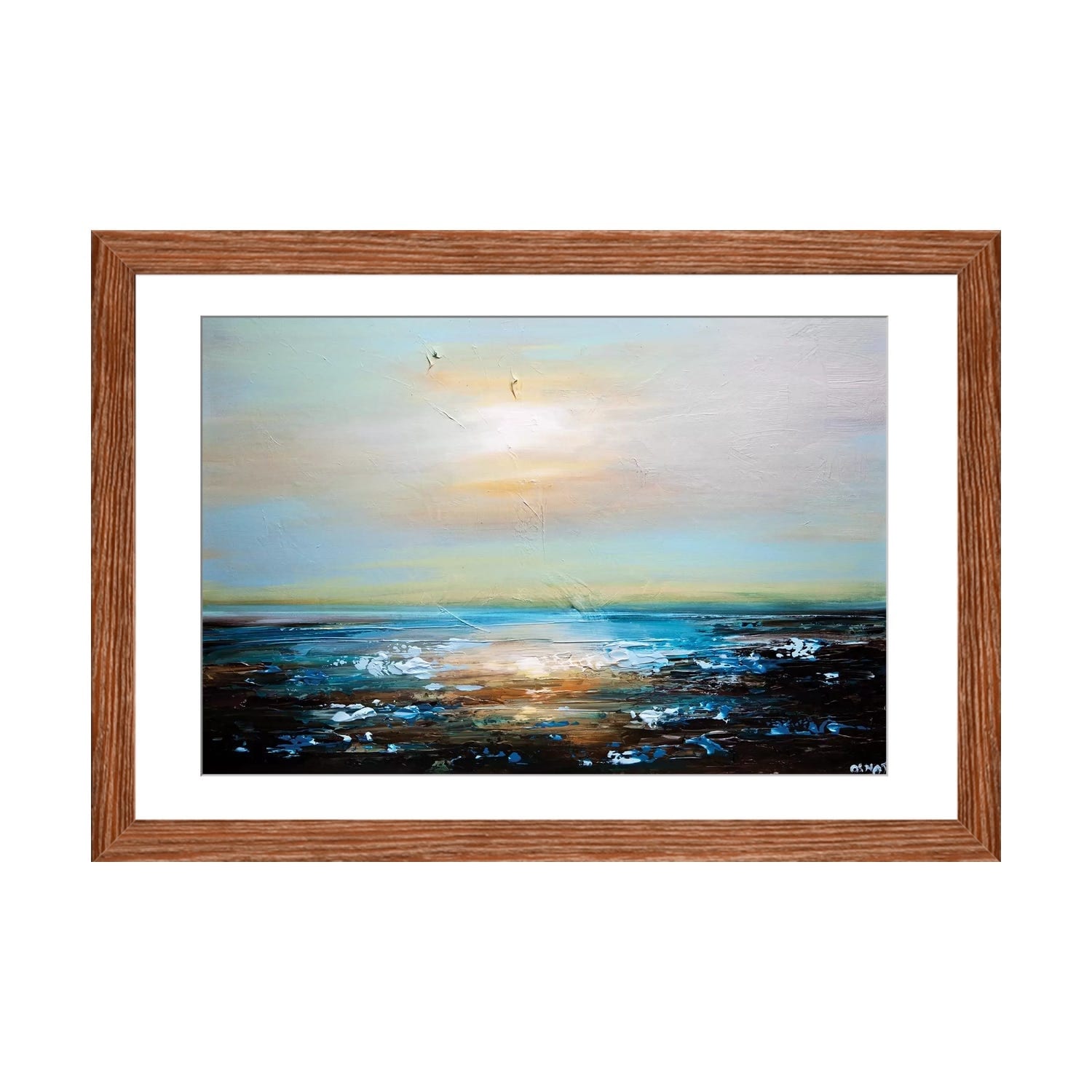 Oliver Gal Nature and Landscape Wall Art Framed Canvas Prints ' Rocky Freedom Golden Sea' Coastal Landscapes - Gold, Yellow