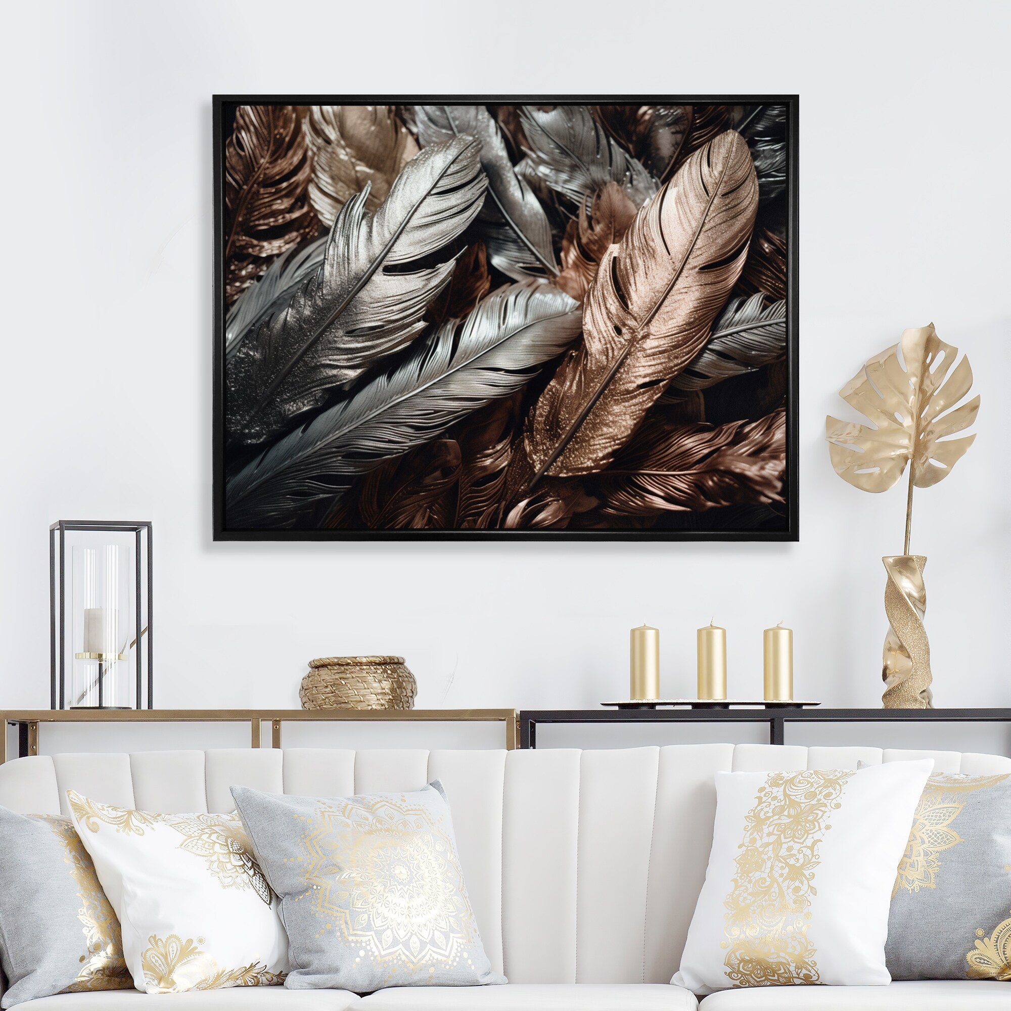 Designart "Silver And Rosegold Expressions of Freedom" Boho Feather Framed Wall Art for Living Room