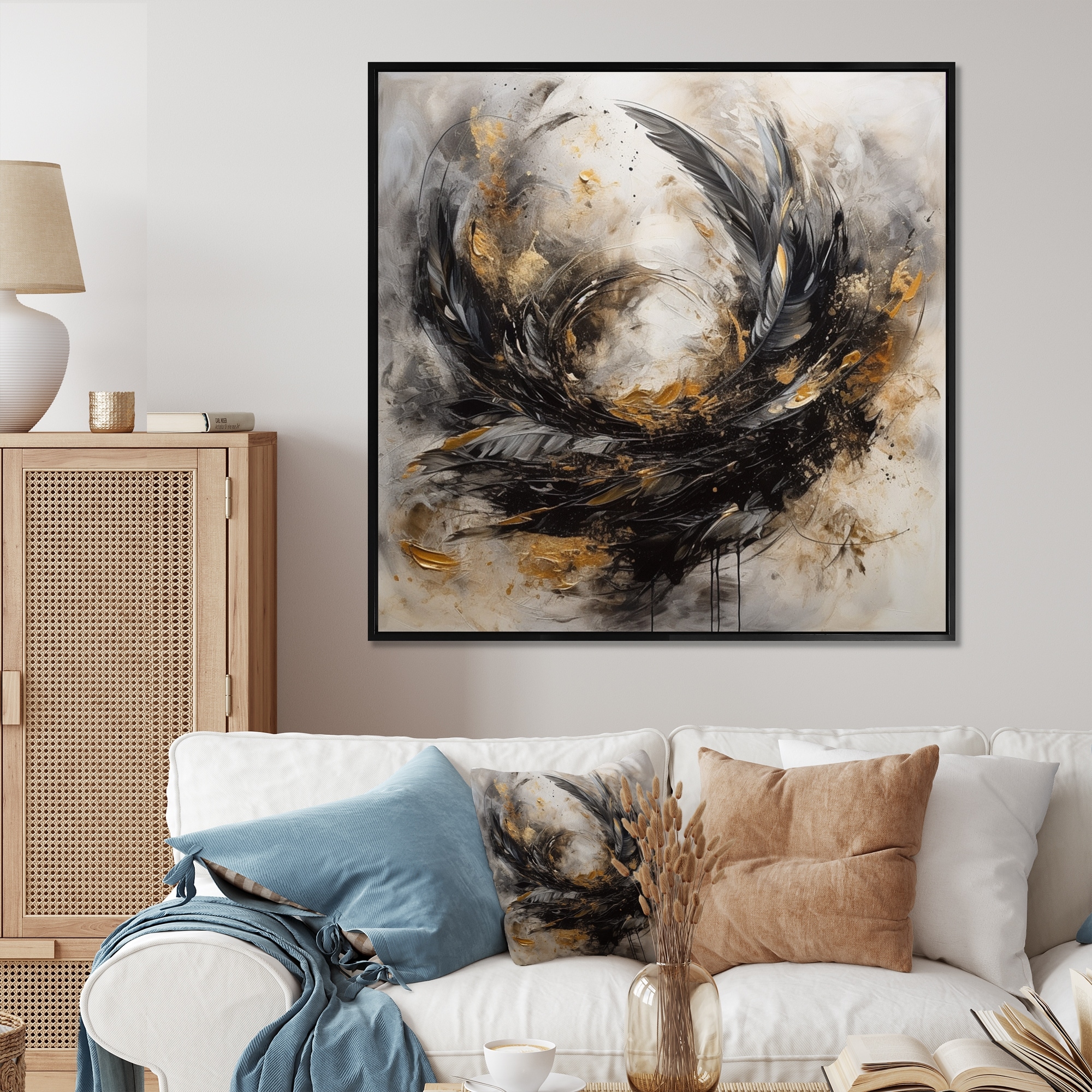 Designart "Gold And Black Expressions of Freedom I" Boho Feather Framed Wall Art for Living Room
