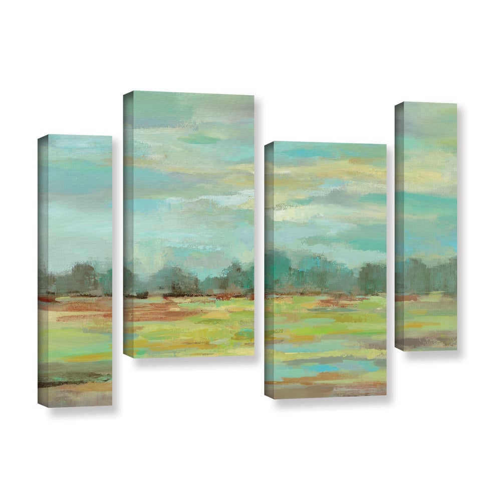 Silvia Vassileva's 'Teal Forest Crop' 4 Piece Gallery Wrapped Canvas Staggered Set