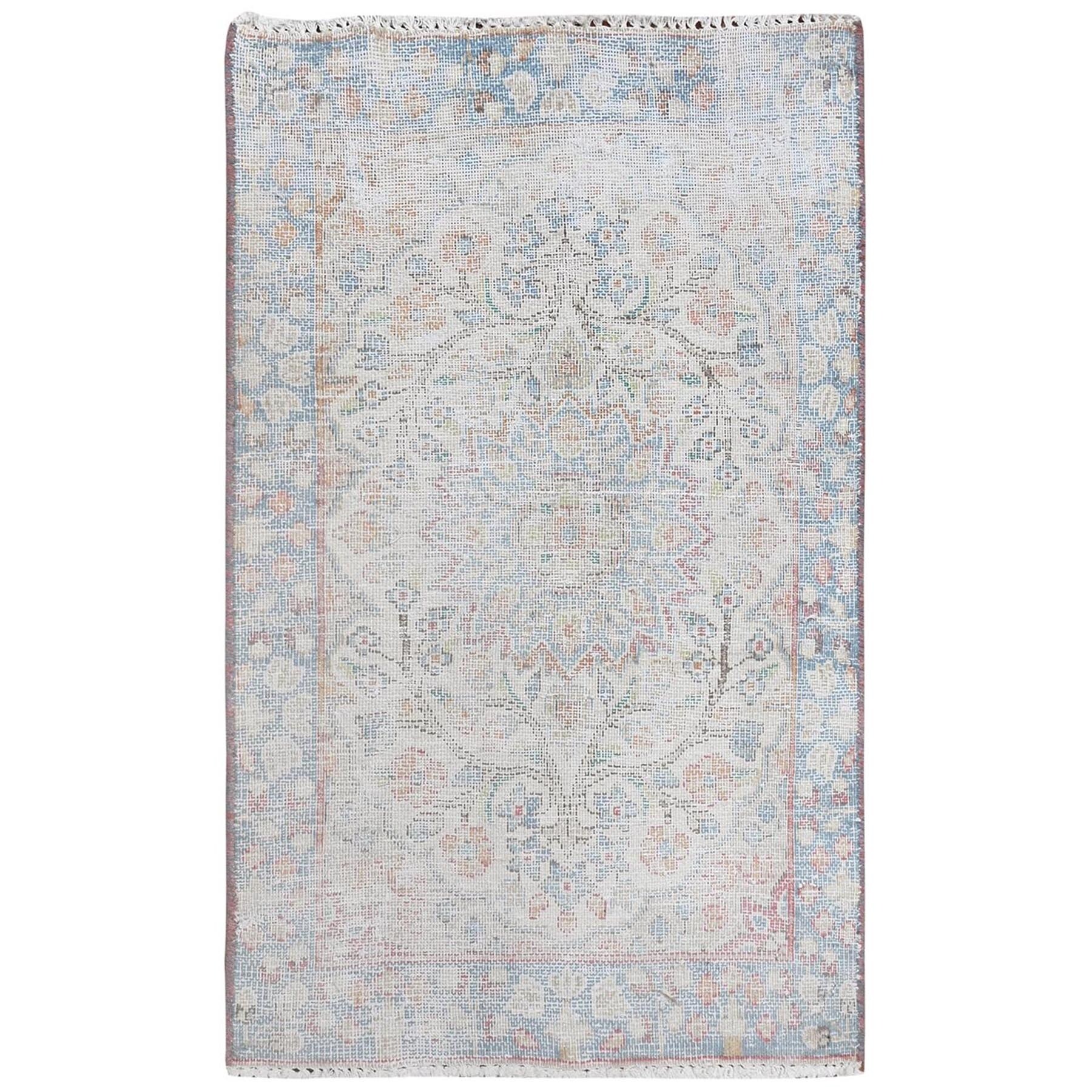 Shahbanu Rugs Ivory, Old Persian Kerman Cropped Thin, Distressed Look Worn Wool Hand Knotted, Mat Oriental Rug (1'9" x 2'9")