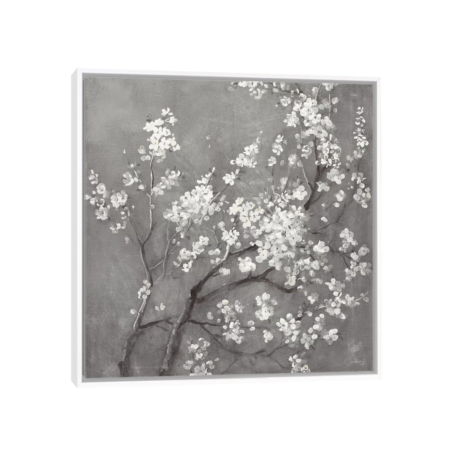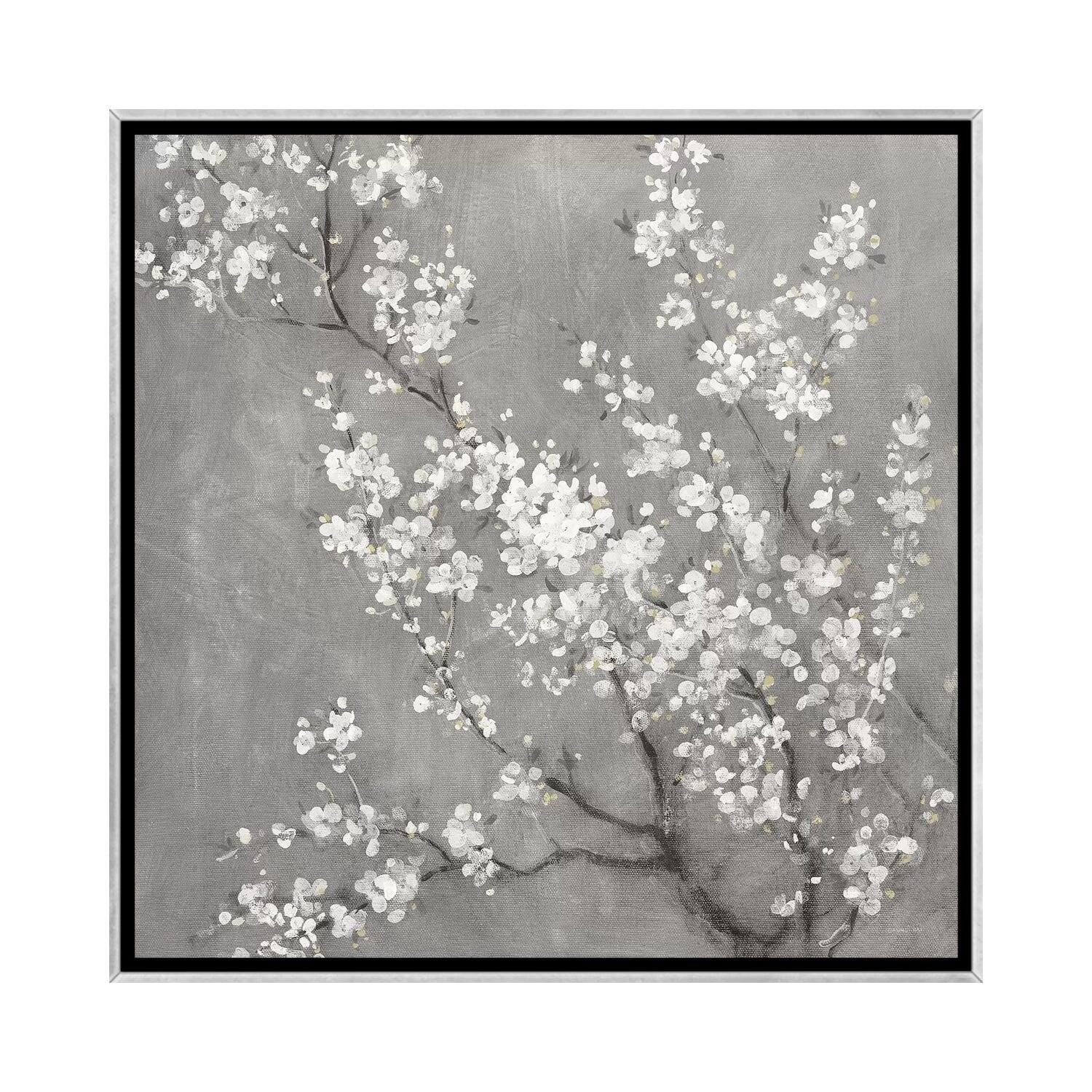 iCanvas "White Cherry Blossoms I on Grey Crop" by Danhui Nai Framed Canvas Print