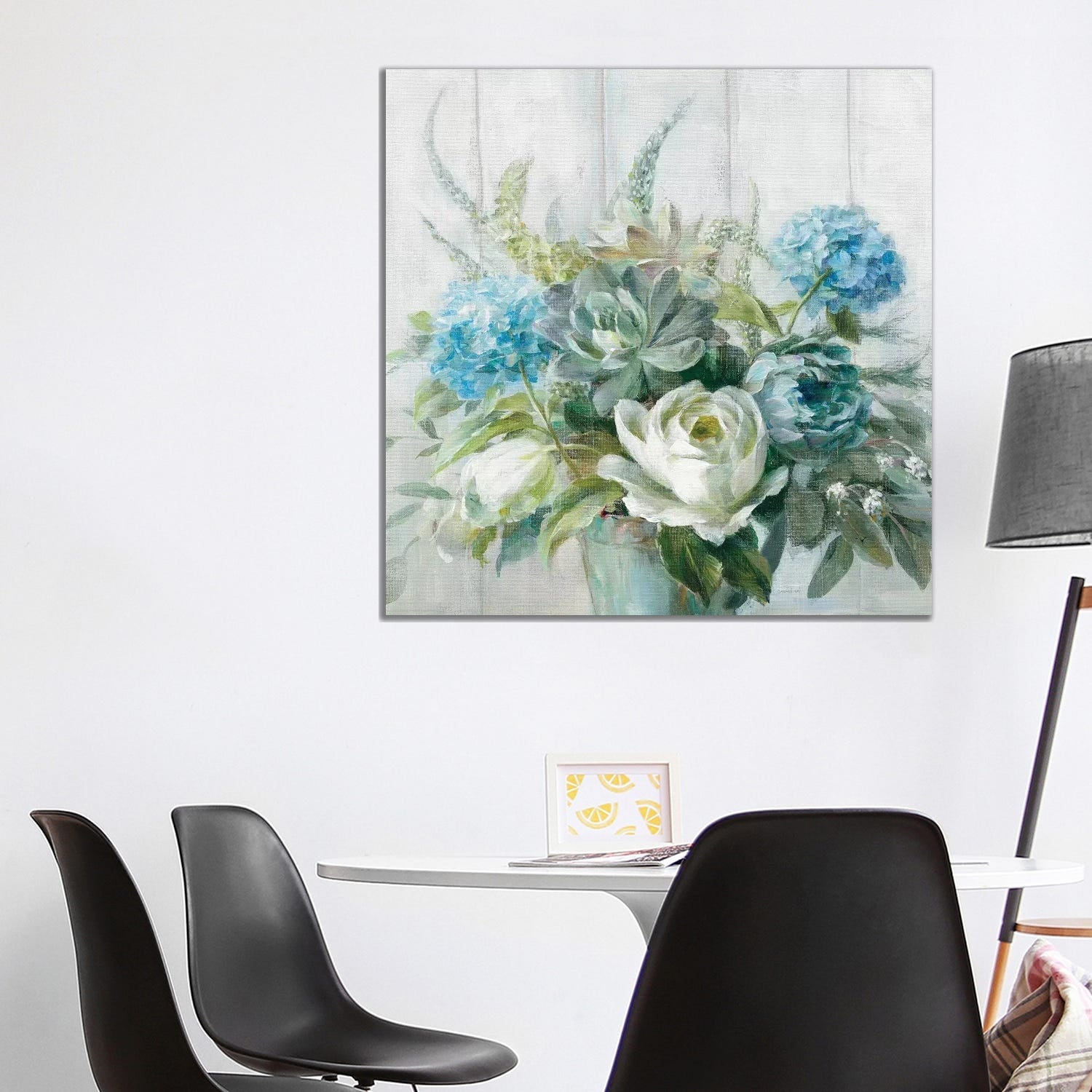 iCanvas "June Roses II White Blue Crop" by Danhui Nai Framed Canvas Print