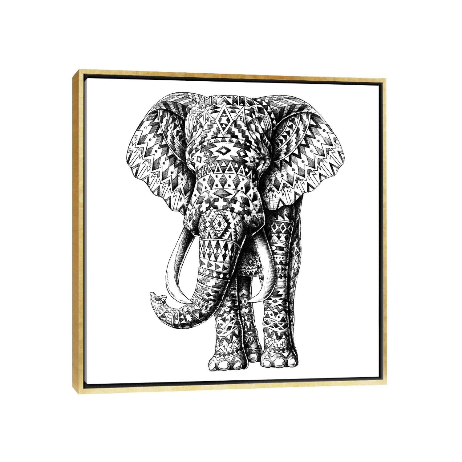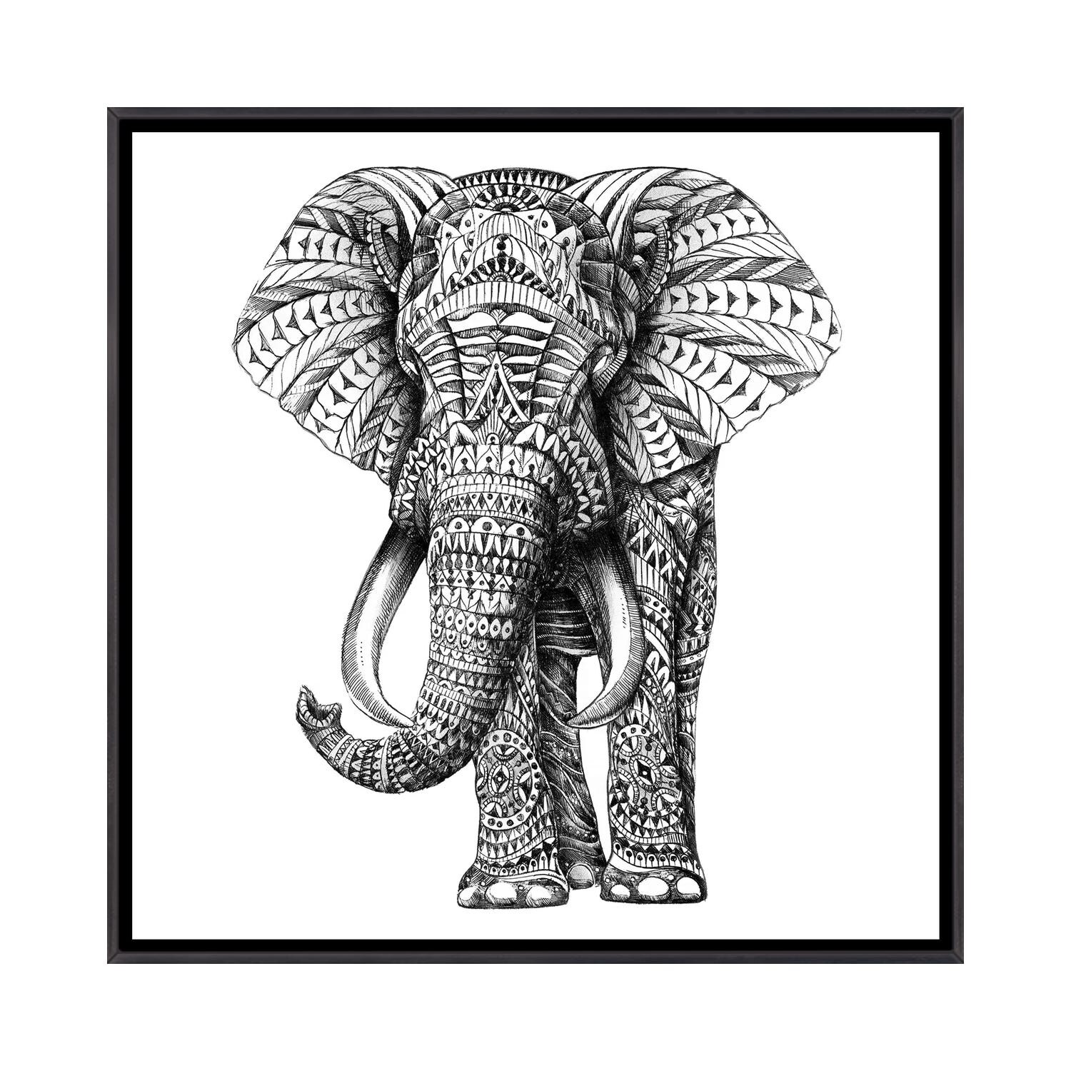 iCanvas "Ornate Tribal Elephant" by Bioworkz Framed Canvas Print