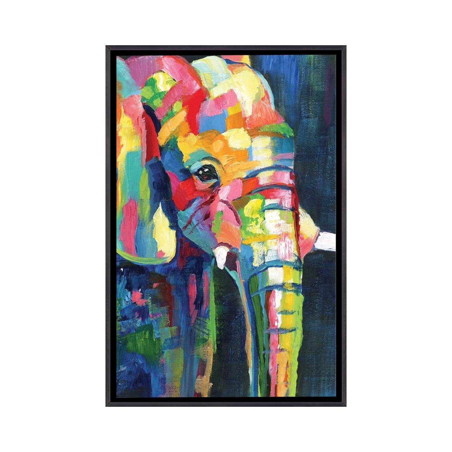 iCanvas "Colorful Elephant II" by Leon Devenice Framed|White
