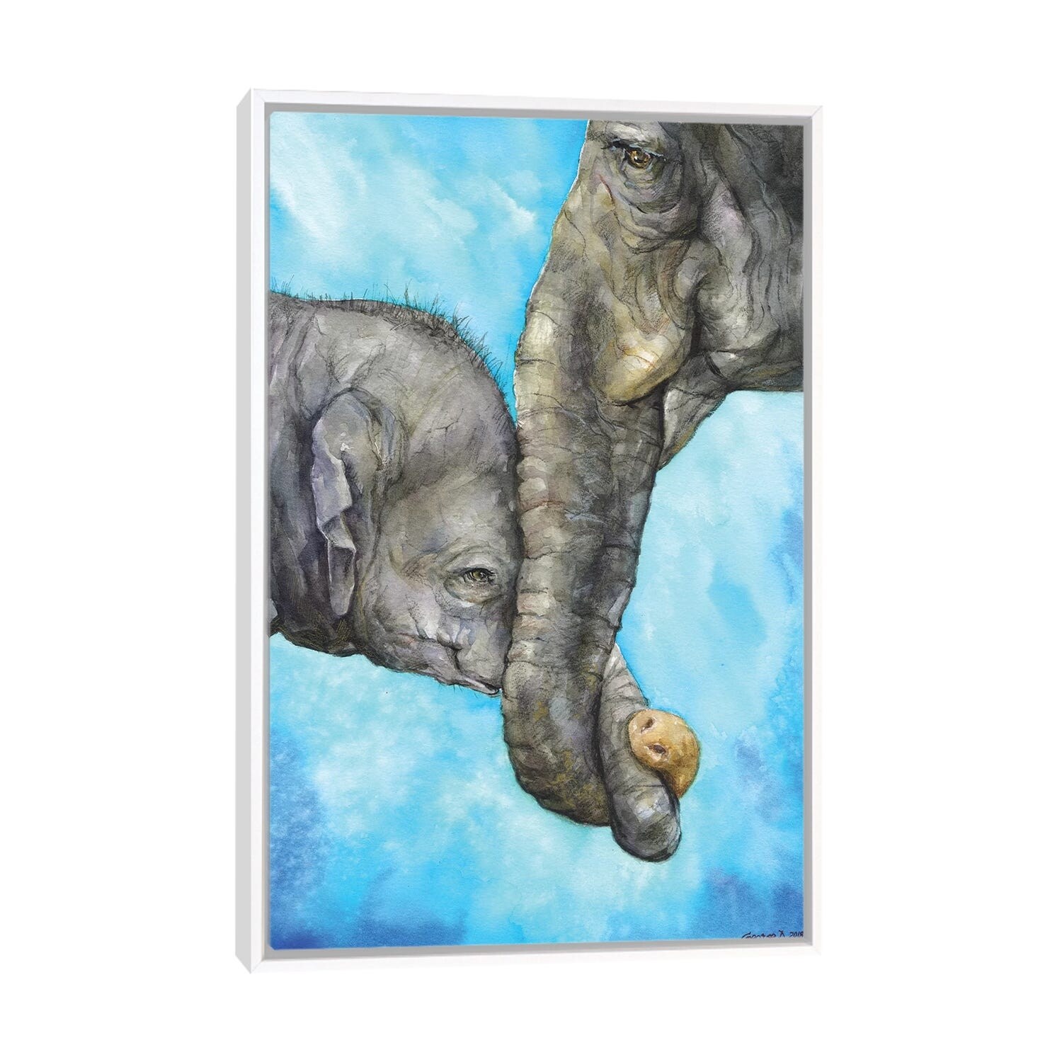 iCanvas "Mommy Elephant Holding an Umbrella" by Art Mirano Framed