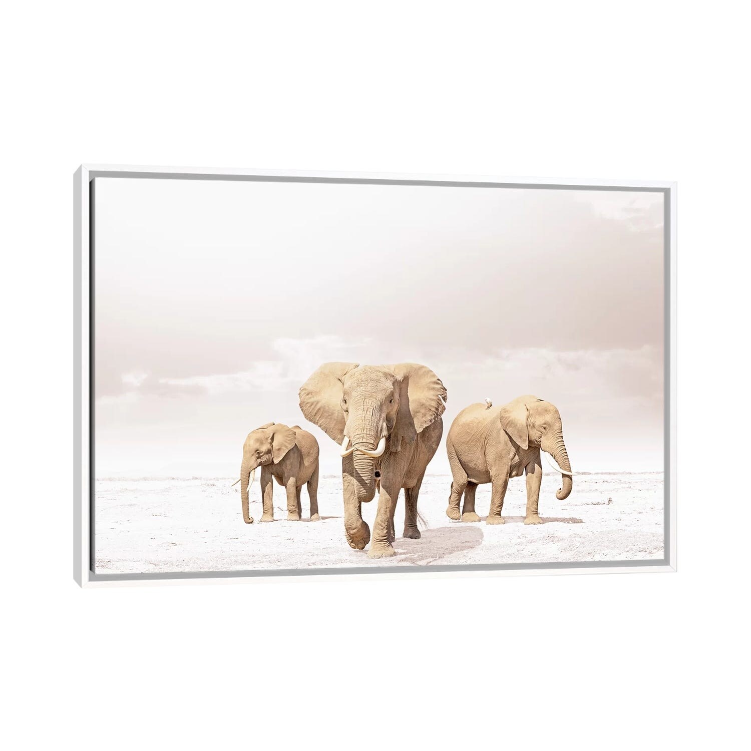 iCanvas "White Three Elephants" by Klaus Tiedge Framed Canvas Print