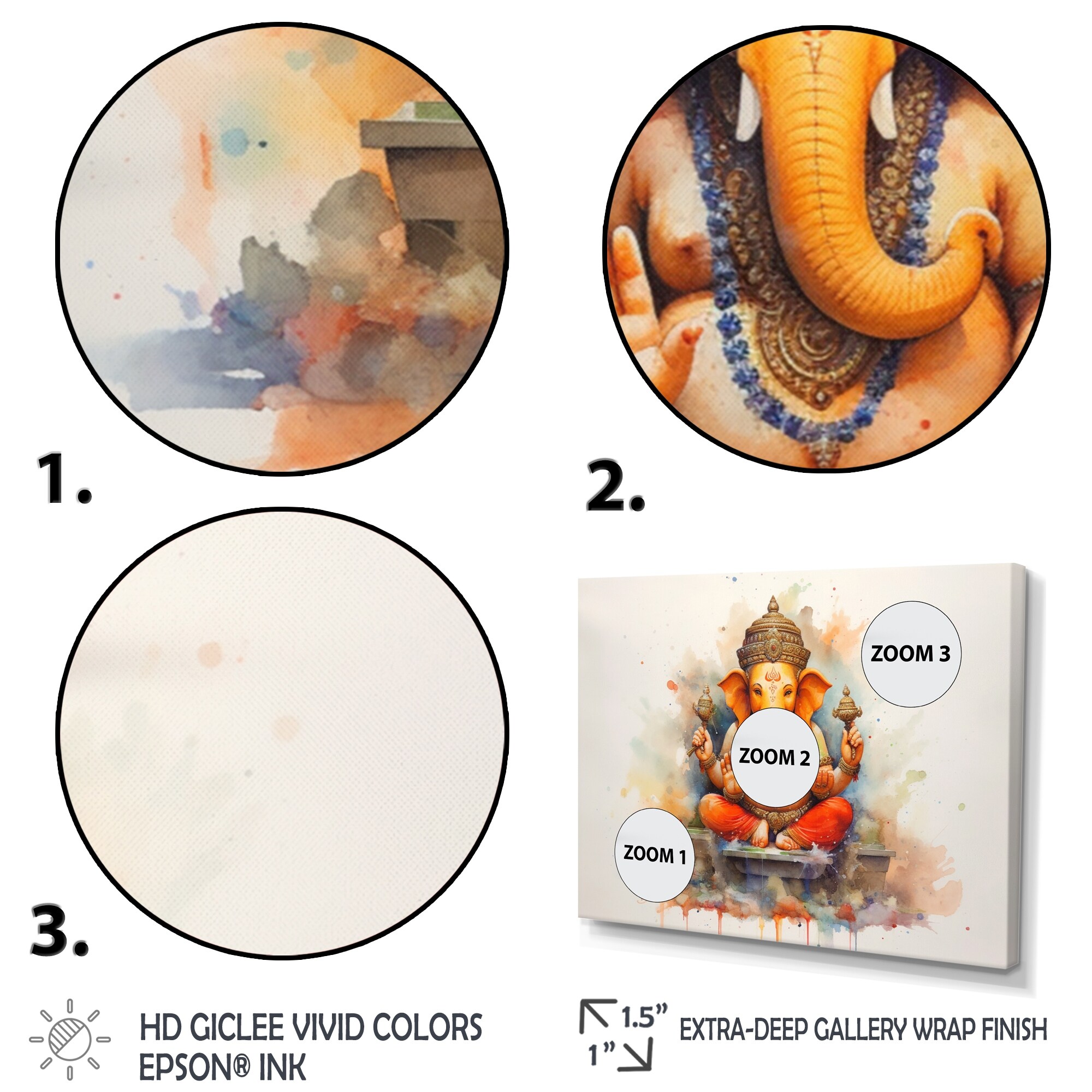 Designart "Vibrant Hinduisim Elephant II" Hinduisim Framed Canvas Wall Art