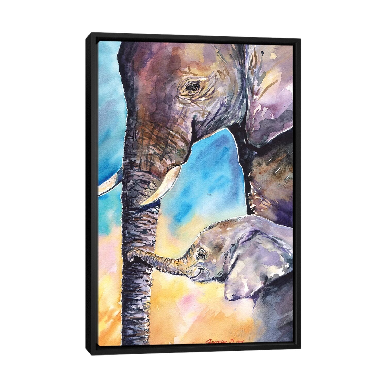 iCanvas "Elephant Mother & Calf" by George Dyachenko Framed Canvas Print
