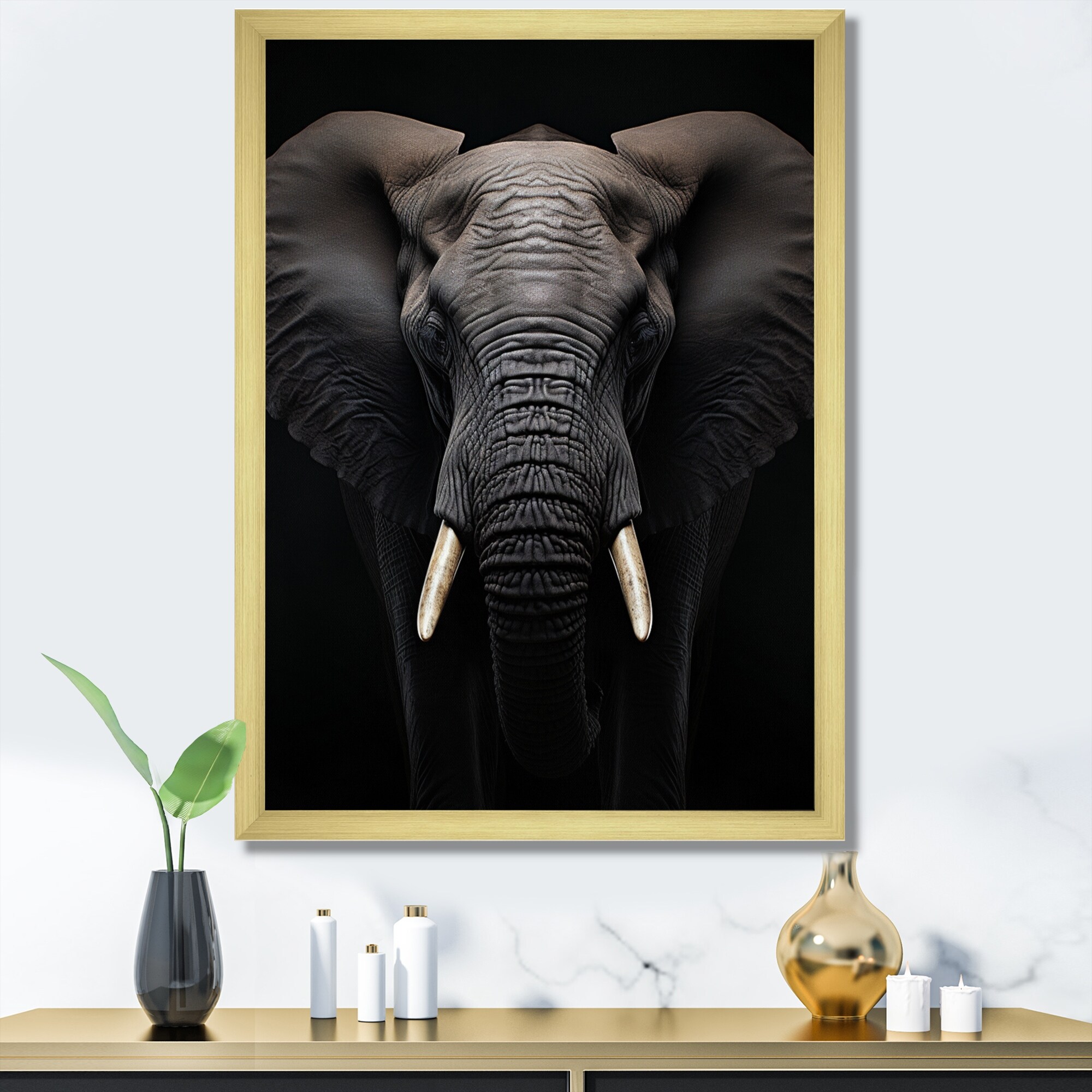 Designart "Black And White Elephant Embrace of Strength V" Animals Elephant Framed Wall Art Living Room