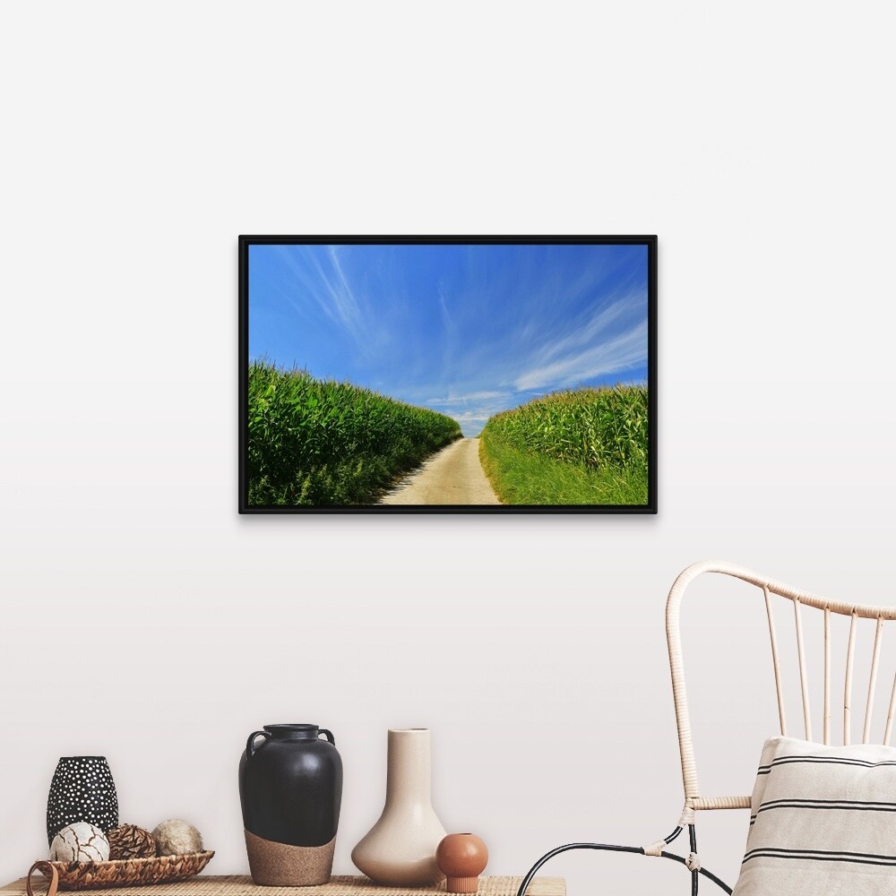 "Road through Cornfield, Germany" Black Float Frame Canvas Art