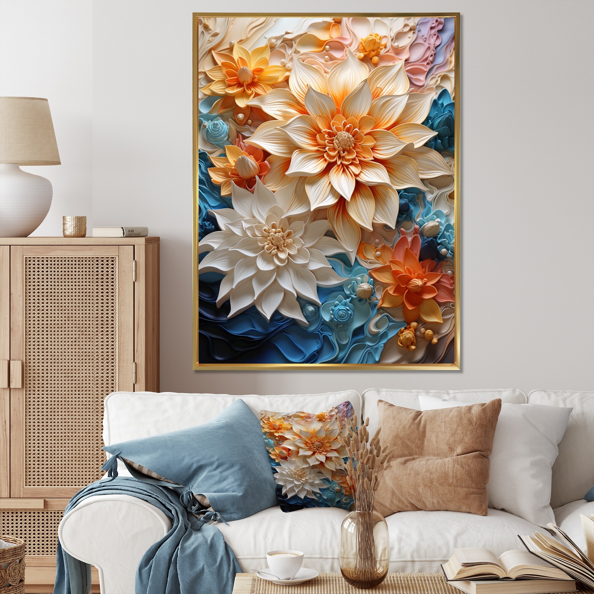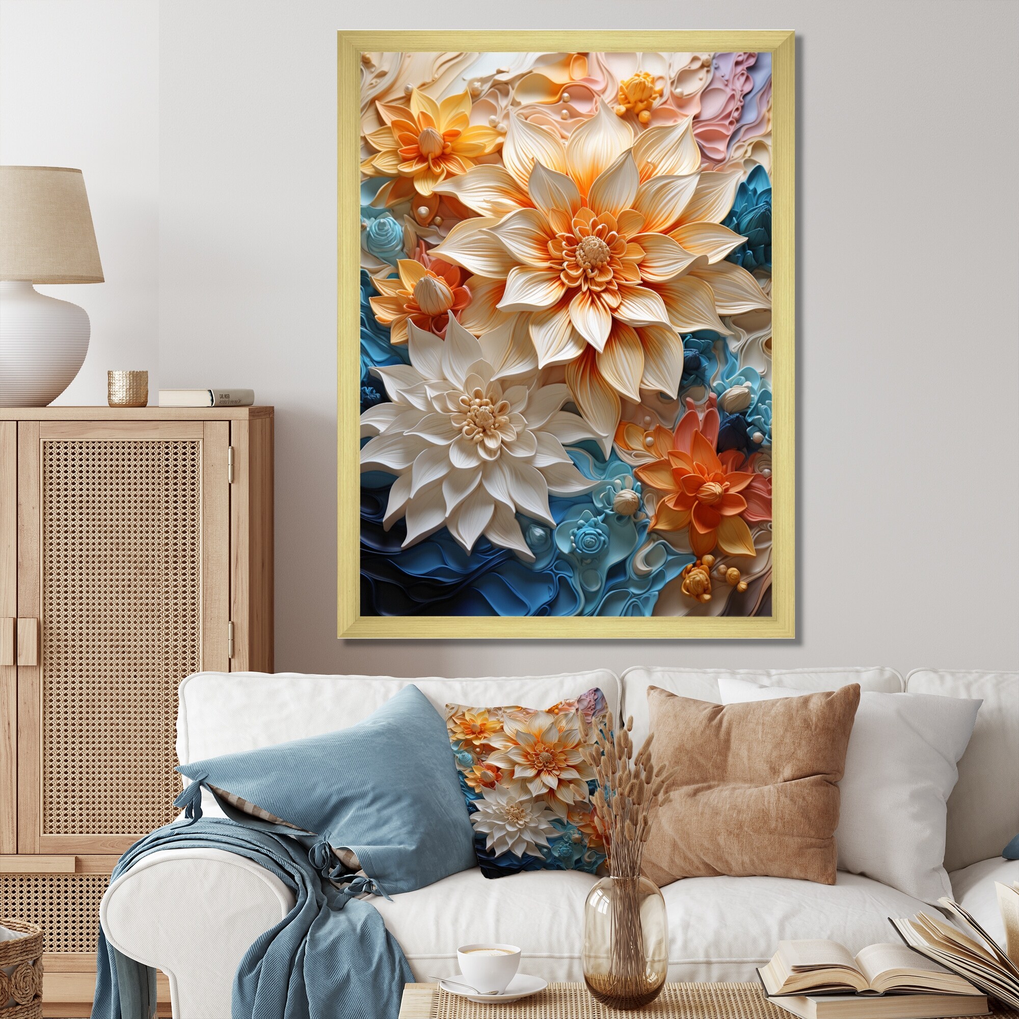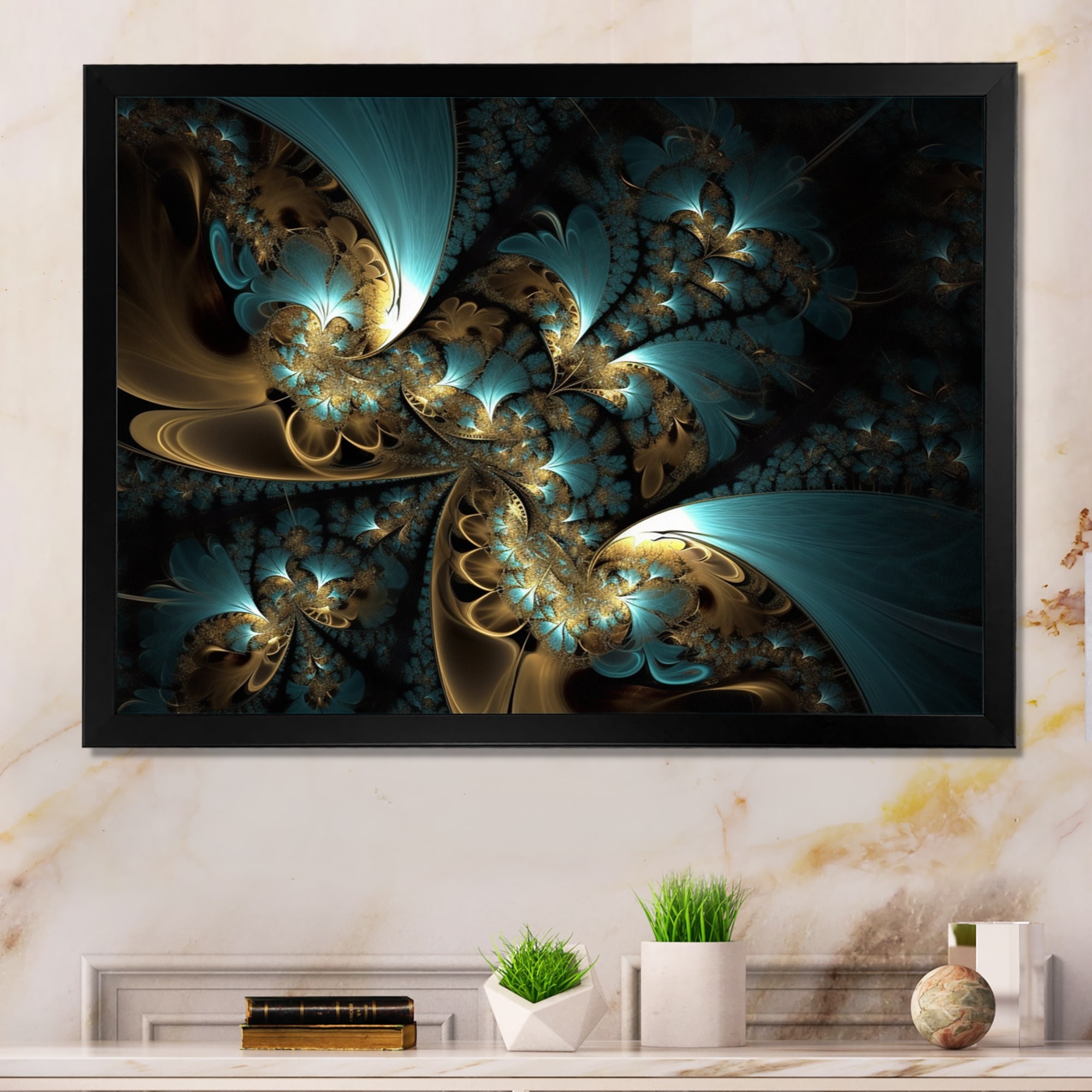 Designart "Blue And Gold Melodies of Infinite Order Iii" Abstract Fractal Framed Wall Art Prints
