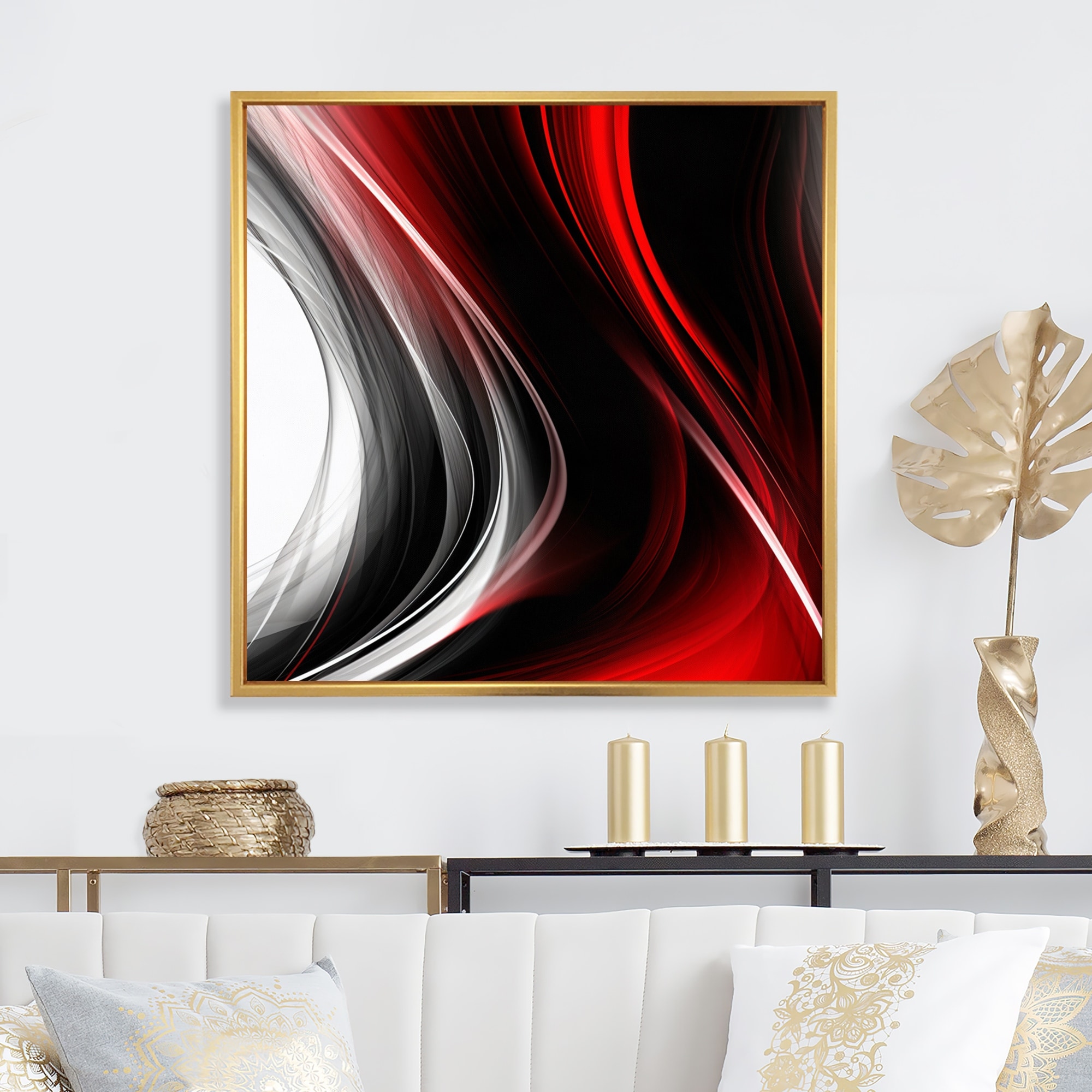 Designart "Red Black Infinite Ripples I" Modern Waves Framed Canvas Art Print