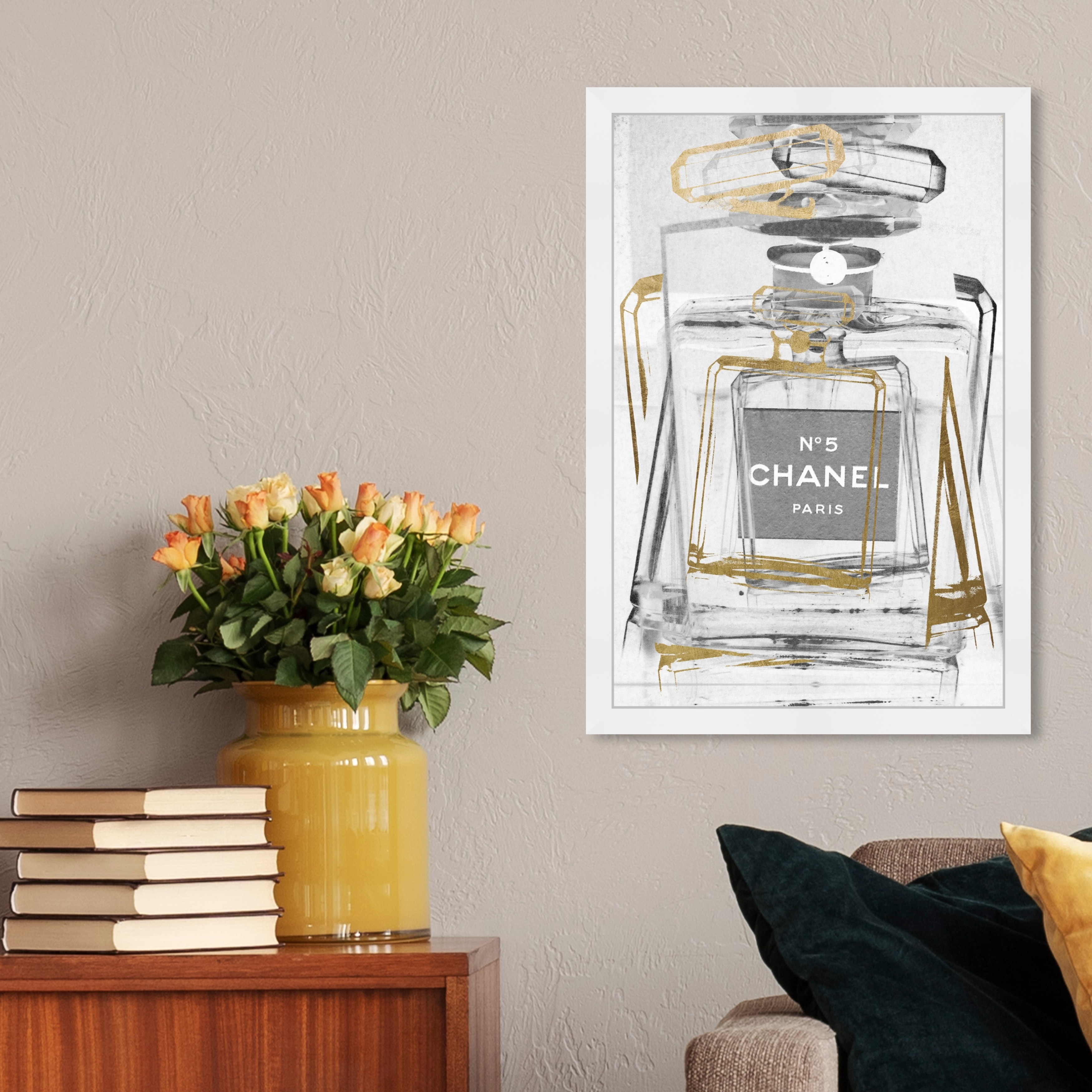 Oliver Gal 'Infinite Glam Light Gray' Fashion and Glam Wall Art Framed Print Perfumes - Gray, Gold