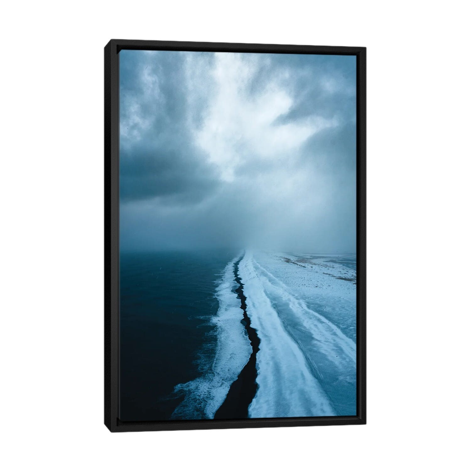 iCanvas "Infinite Black Sand Beach During A Snowy Day in Iceland" by Michael Schauer Framed