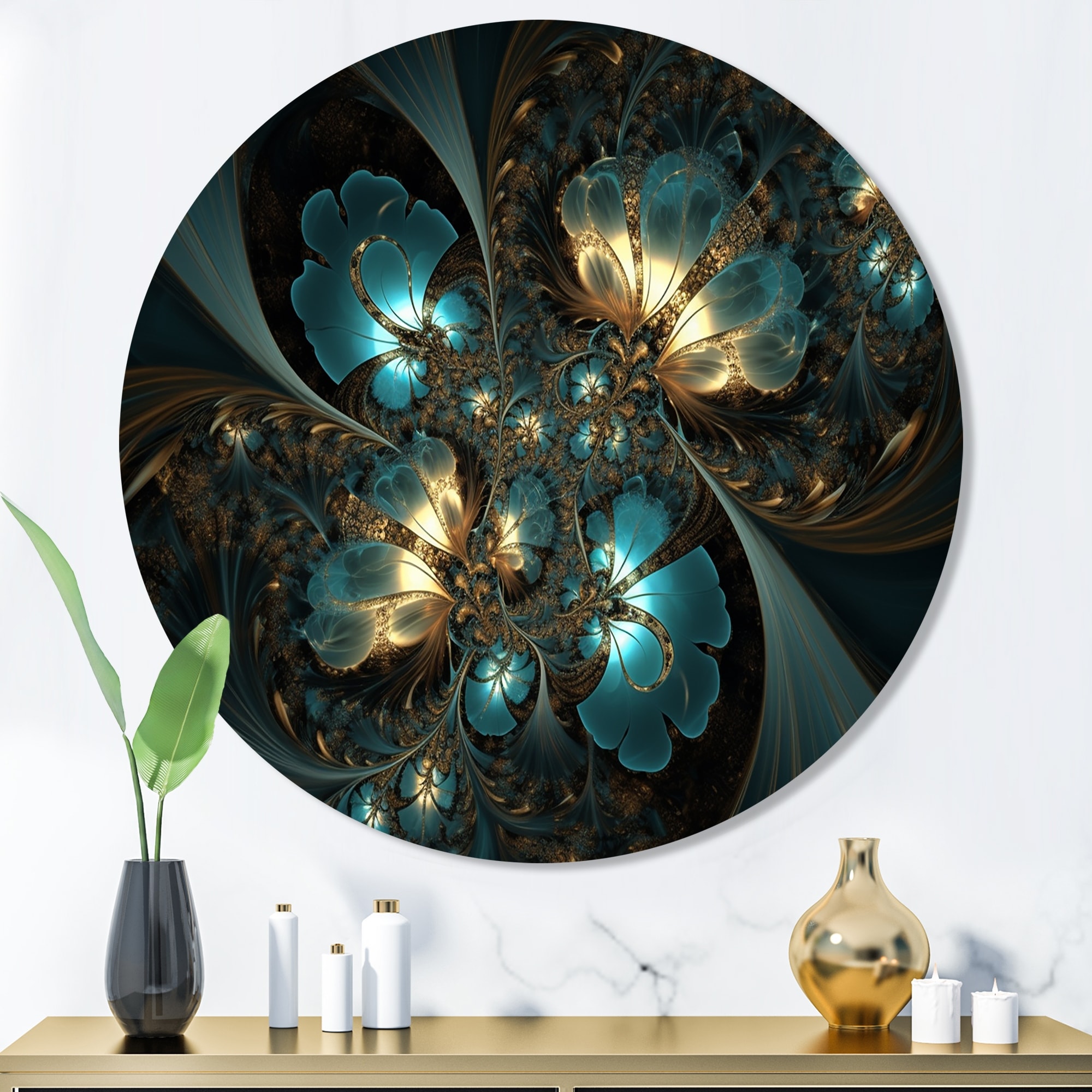 Designart "Blue And Gold Melodies of Infinite Order II" Abstract Fractal Metal Round Wall Art