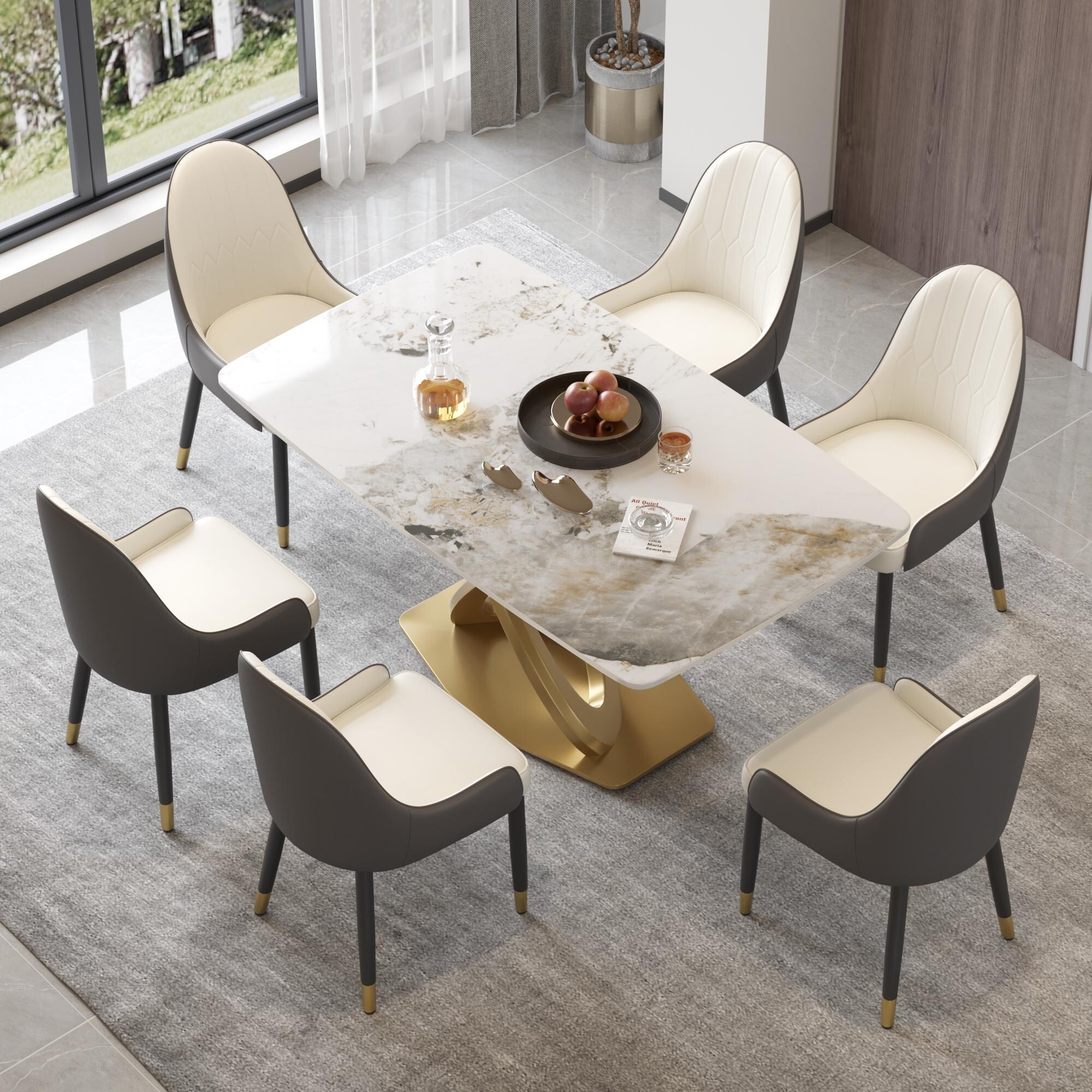 Dining Table for 6~8 Person, Faux Marble Kitchen Dining Table with Gold Pedestal.