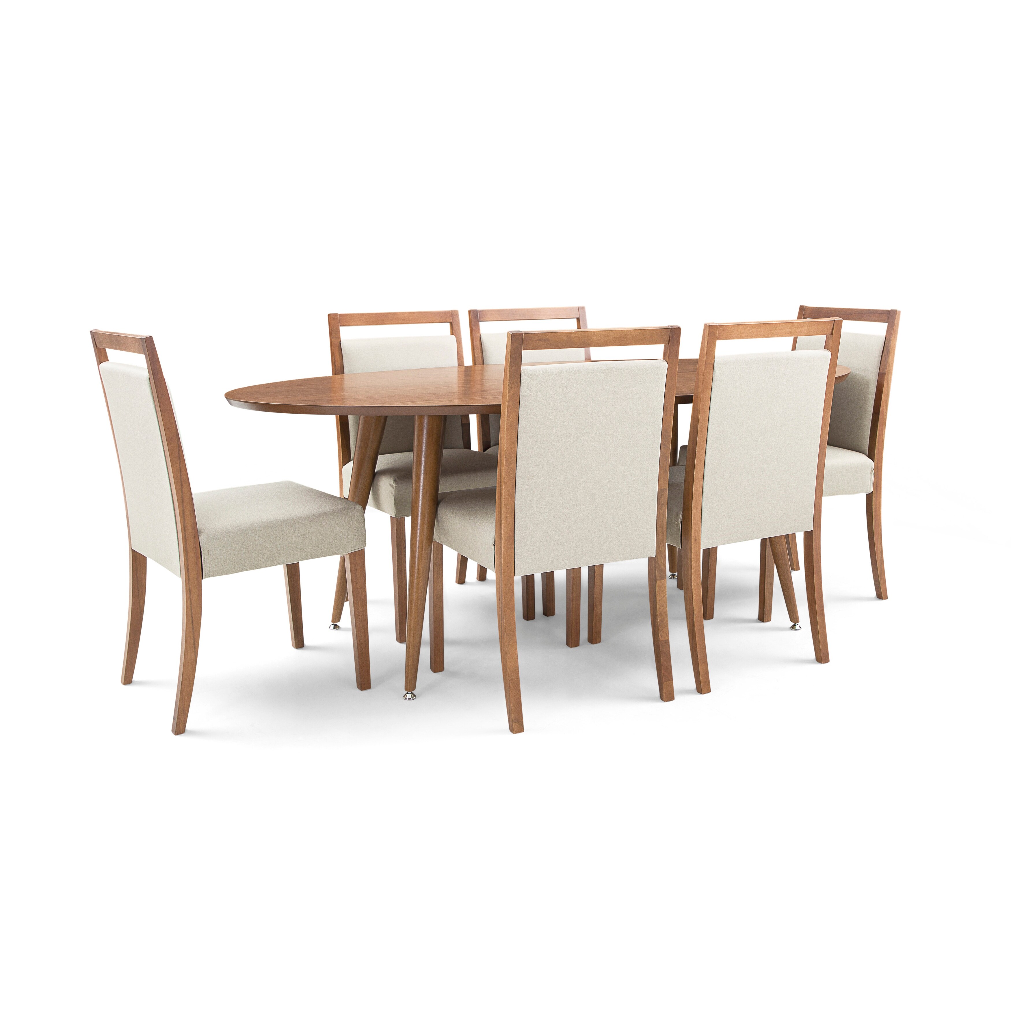 Herval 74 x 43 Oval Table with 6 Upholstered with Wood Dining Chairs