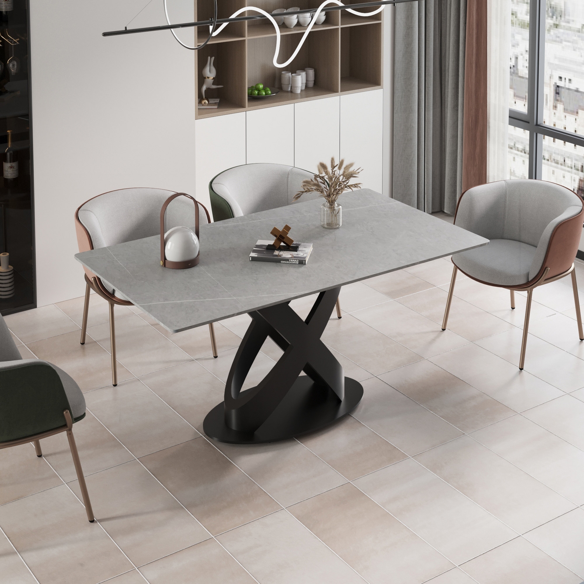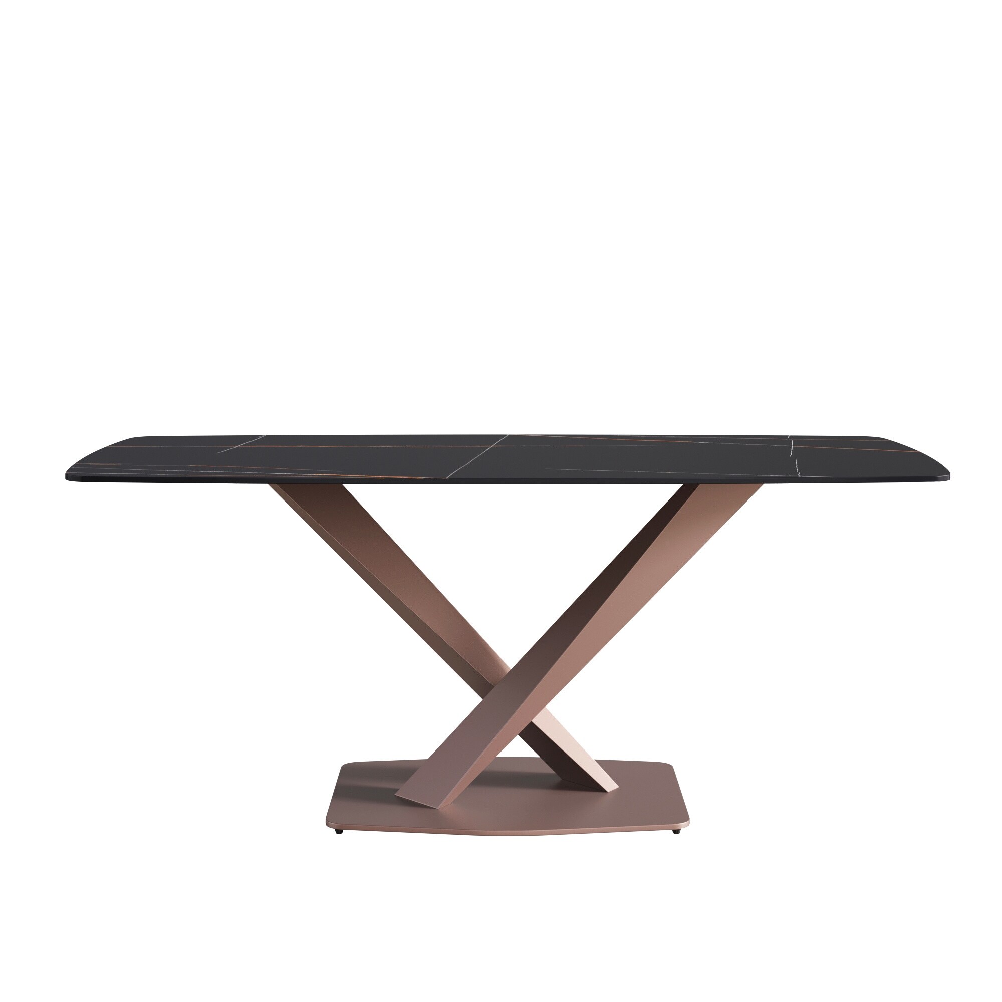 Modern Sintered Stone Dining Table W/ X-cross Metal Legs