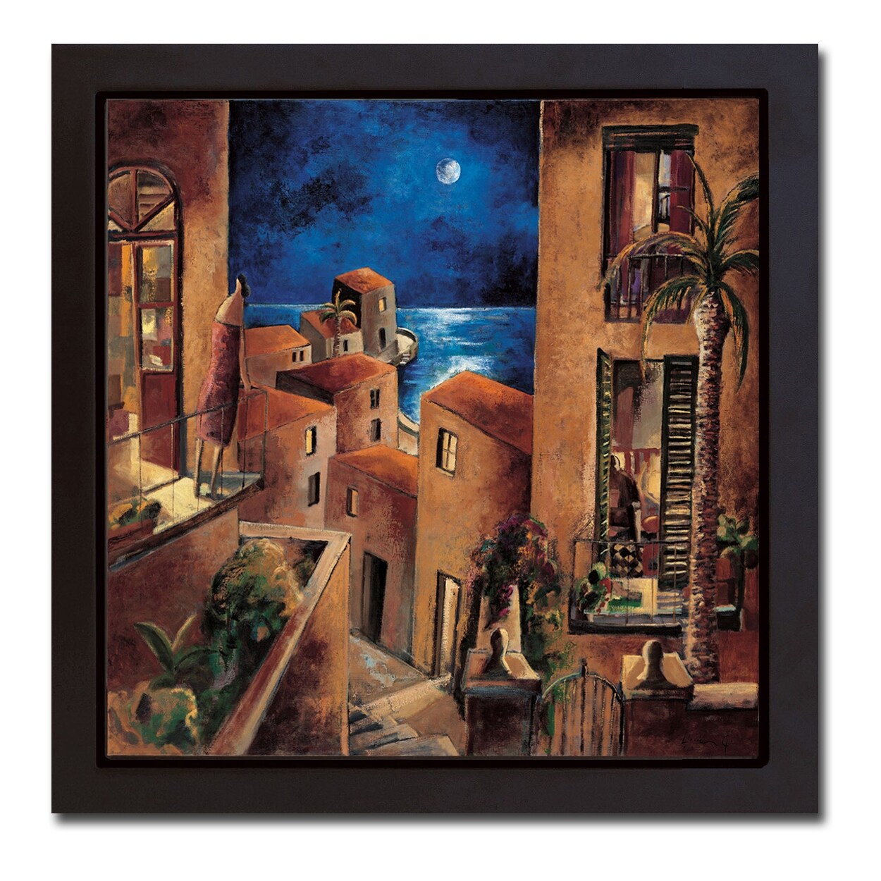 Miremos La Luna (Let's Look at the Moon) by Didier Lourenco Black Floater Framed Canvas Art (26 in x 26 in)
