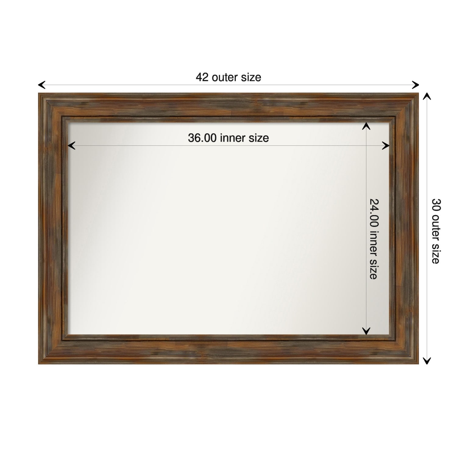 Non-Beveled Wood Wall Mirror - Alexandria Rustic Brown Frame