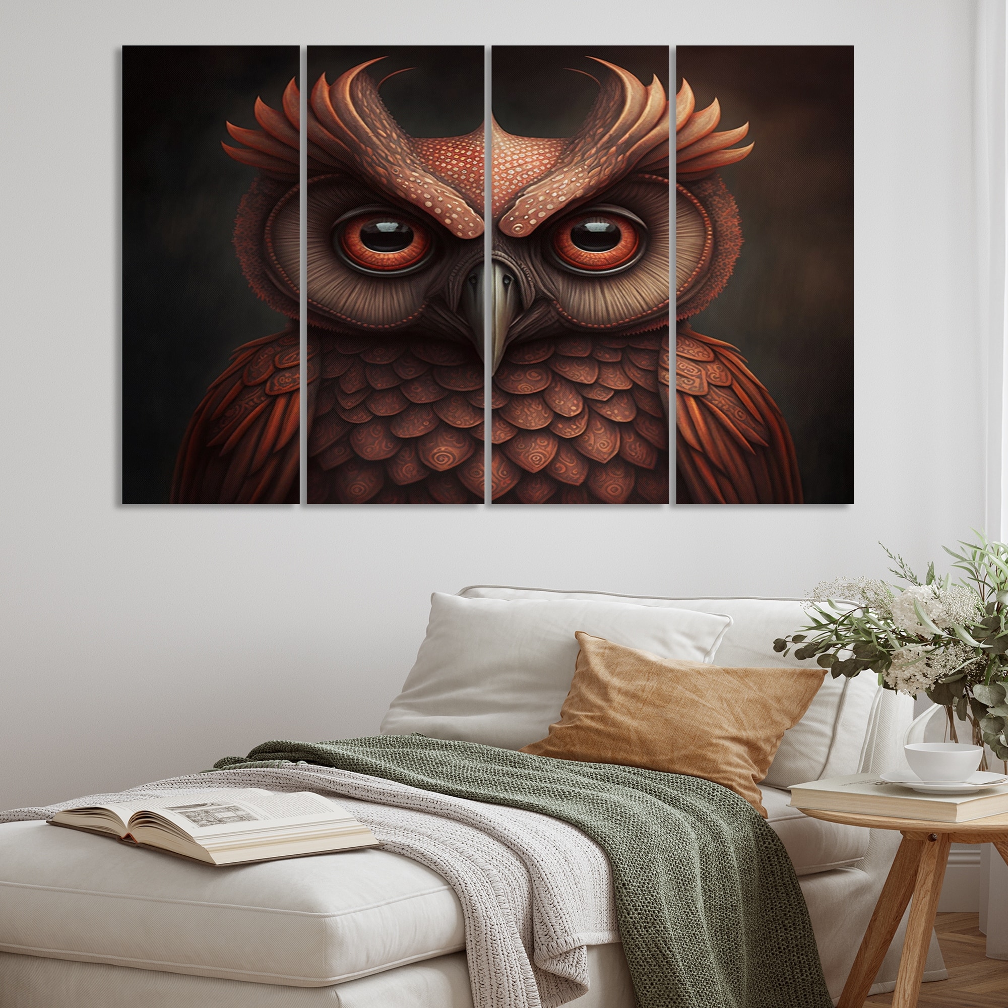 Designart "Wise Owl in Earth Tones II" Animals Owl Multipanel Wall Art Living Room