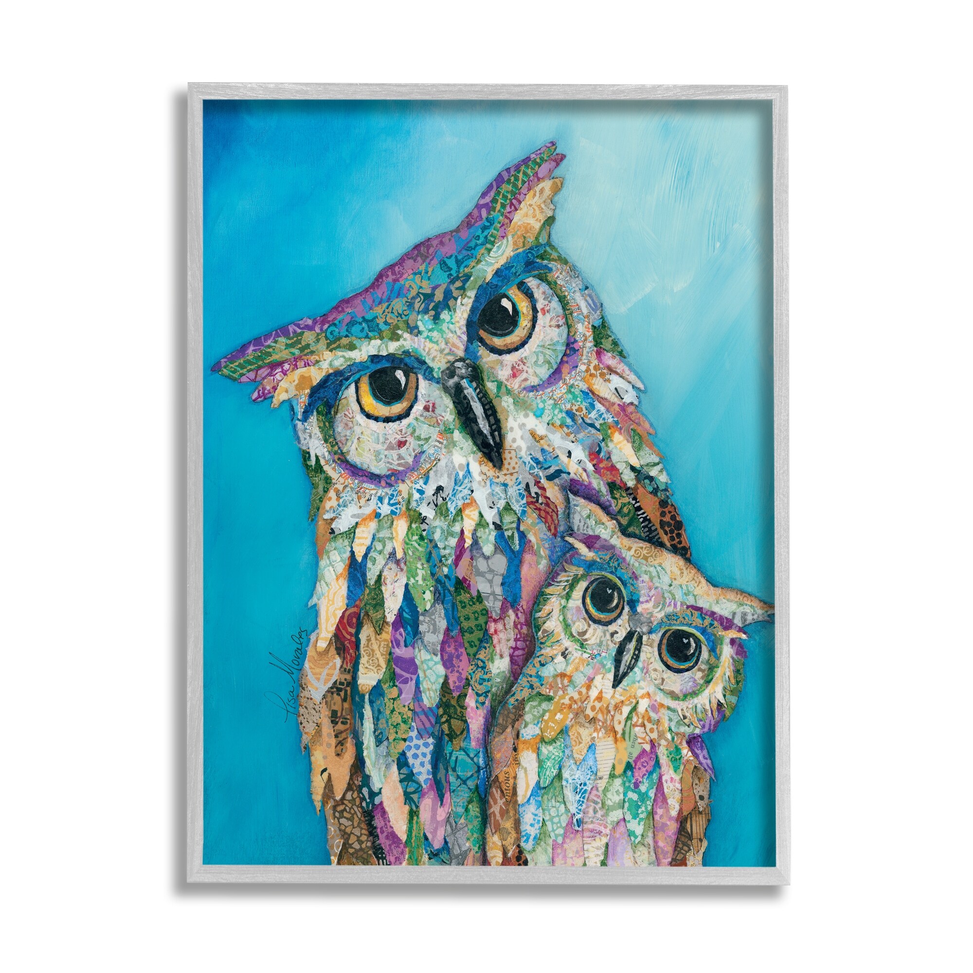 Stupell Industries Pair Wise Owls Varied Patterns Painting Collage Framed Wall Art, Design by Lisa Morales