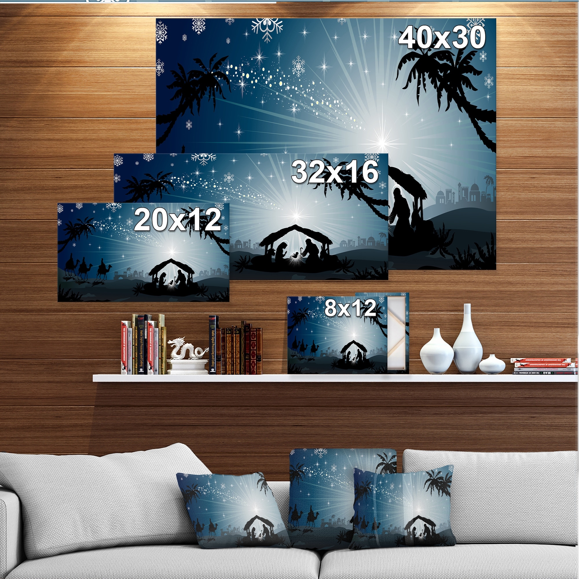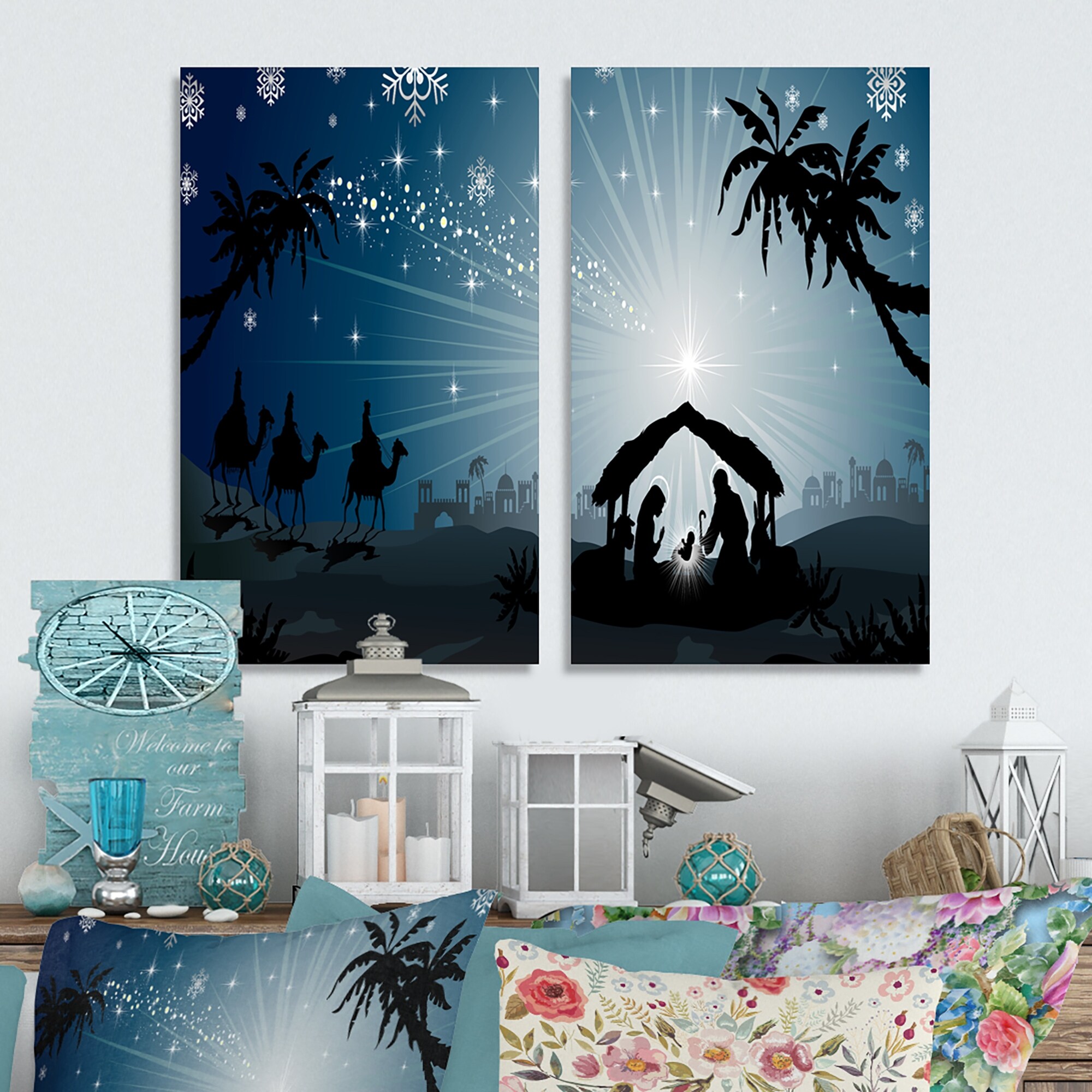 Designart "Christmas Nativity Scene with Three Wise Men" Holiday Canvas Wall Art Print 2 Piece Set
