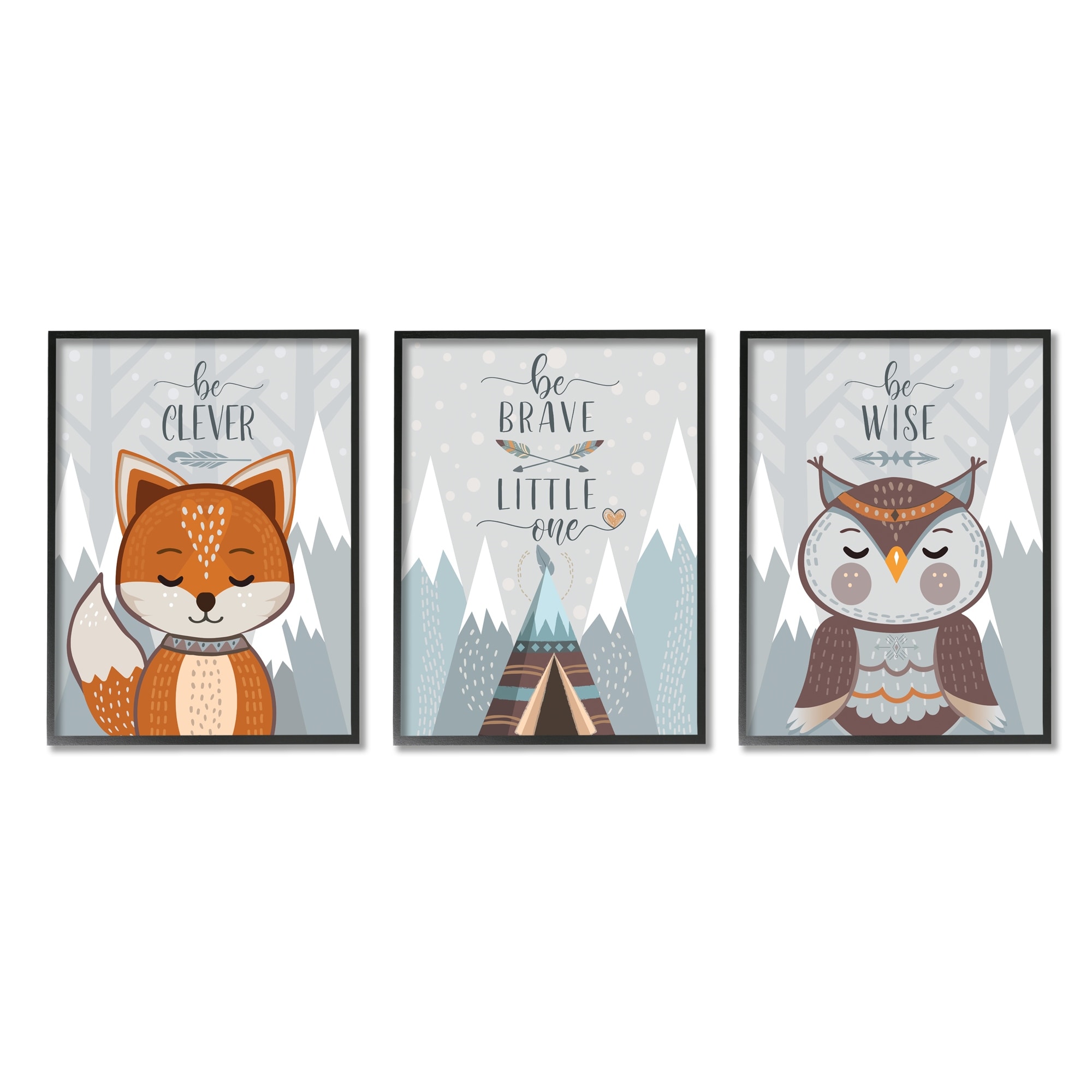 Stupell Industries Be Clever Brave And Wise Phrases Forest Animal, 3pc Multi Piece Framed Wall Art Set