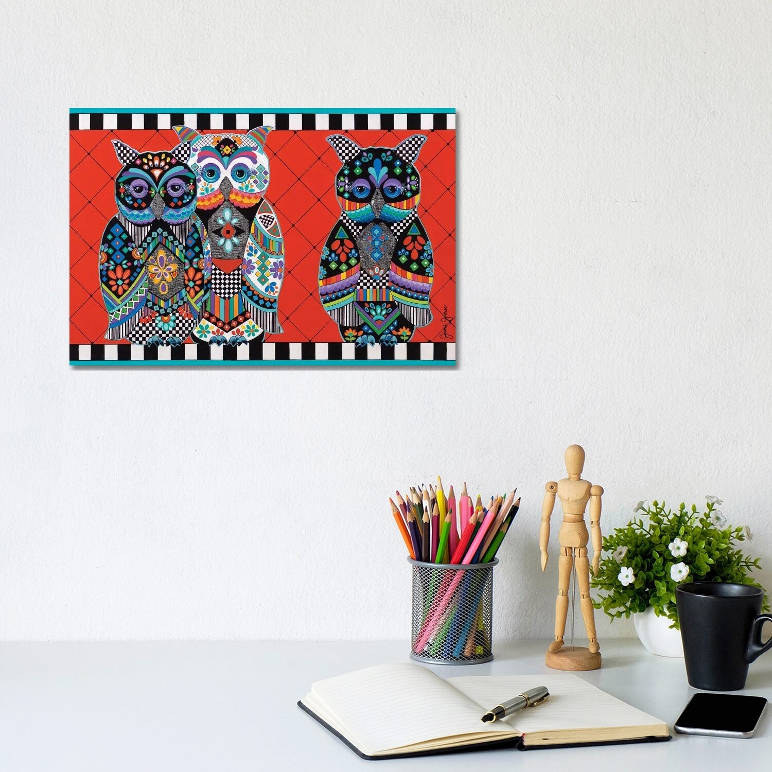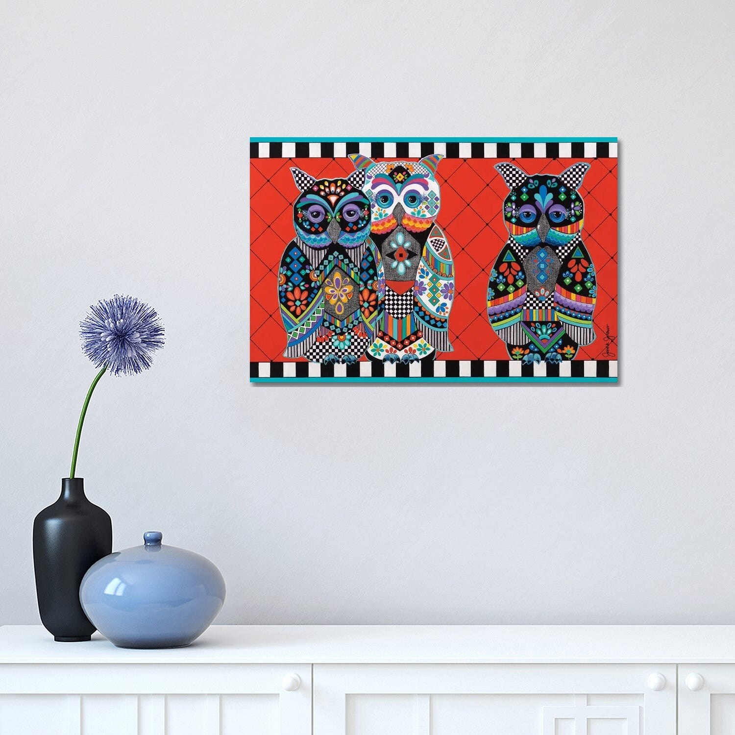 Stupell Pair Wise Owls Varied Patterns Painting Collage Canvas Wall Art, Design by Lisa Morales