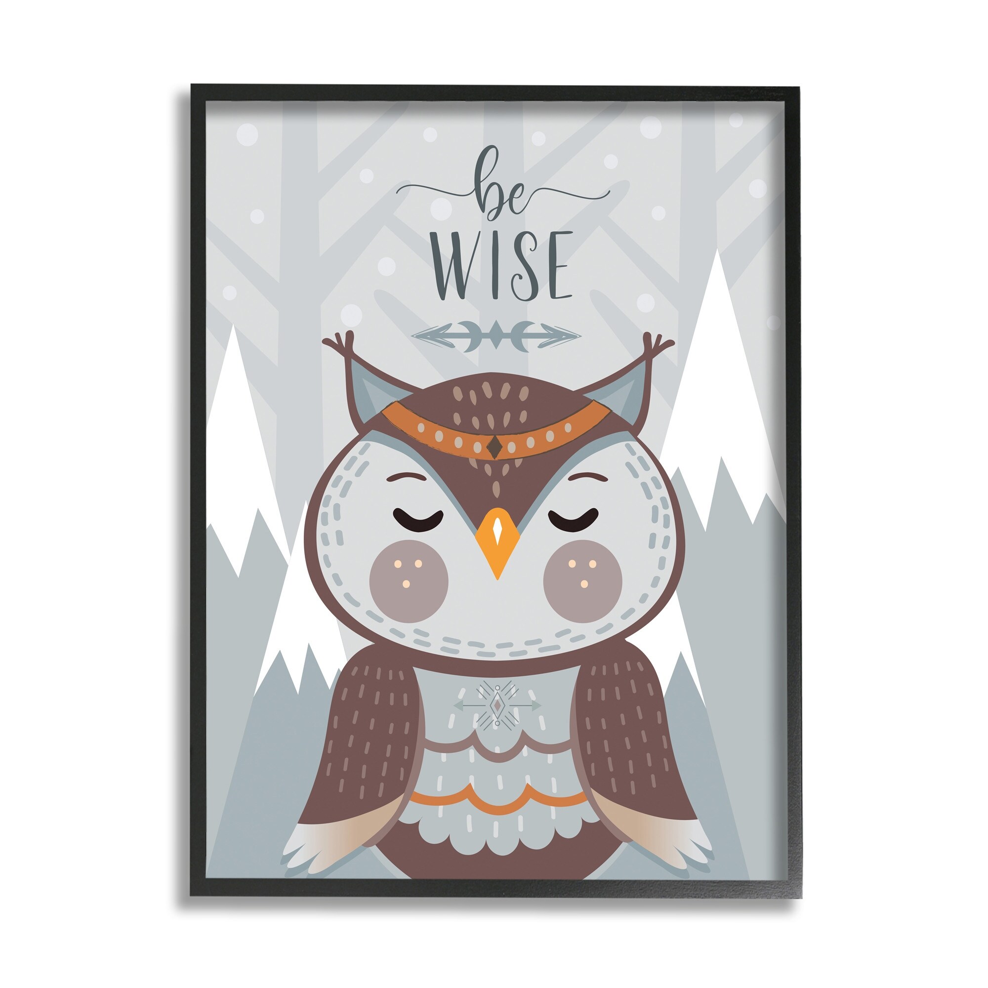 Stupell Industries Be Wise Quote Loveable Owl Snowy Mountains Framed Wall Art - Grey