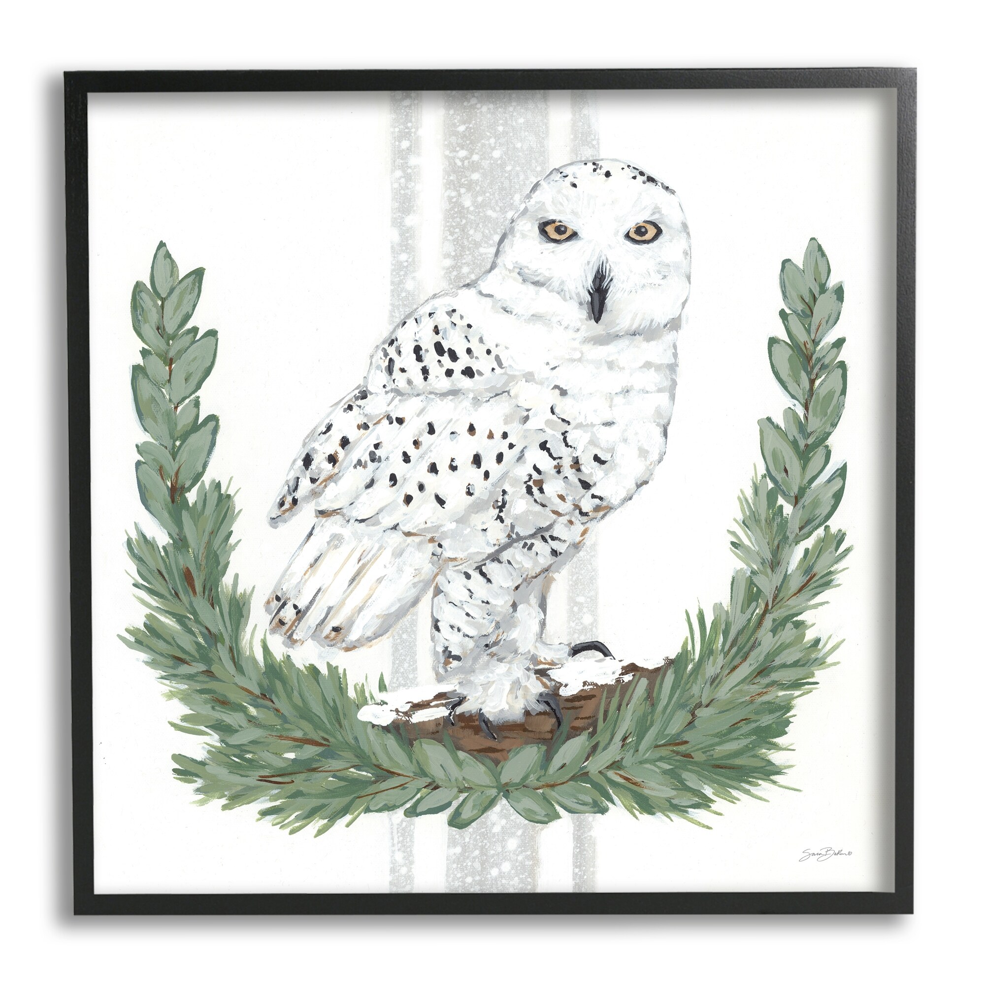 Stupell Industries Charming Laurels Surrounding Wise Snowy Owl Illustration Framed Wall Art - Green