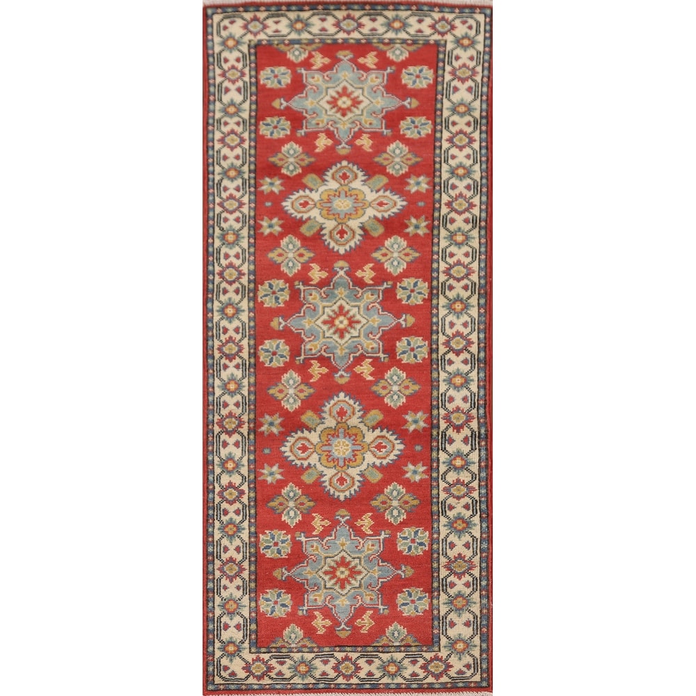 Kazak Runner Rug Hand-Knotted Red Wool Carpet - 2'1" x 5'9"