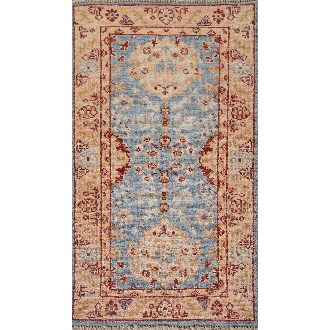 Blue Oushak Vegetable Dye Oriental Foyer Rug Hand-Knotted Wool Carpet - 2'1" x 4'0"