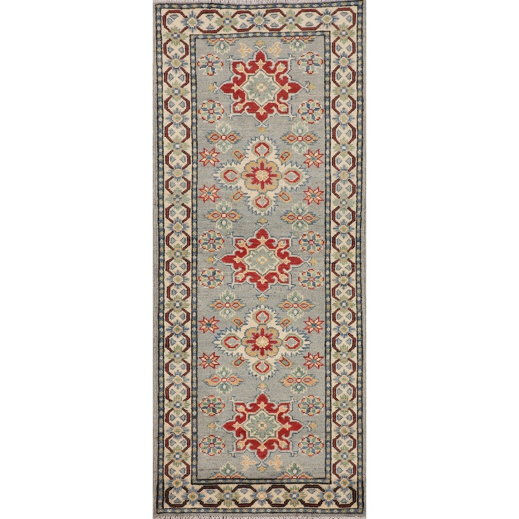 Geometric Kazak Oriental Runner Rug Hand-Knotted Wool Carpet - 2'1" x 5'9"