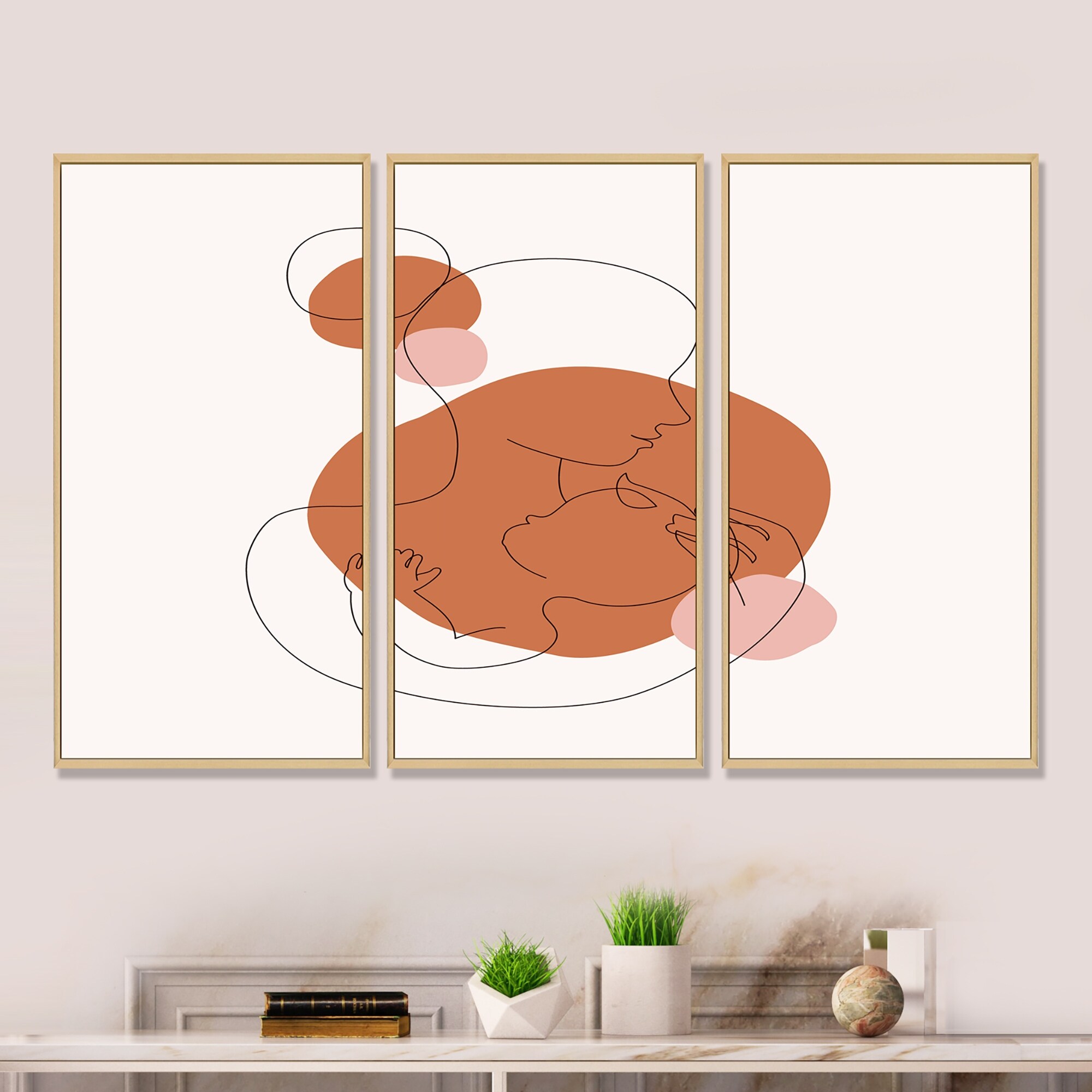 Designart "Abstract One Line Woman Portraits" Modern Framed Canvas Wall Art Print Set of 3 - 4 Colors of Frames