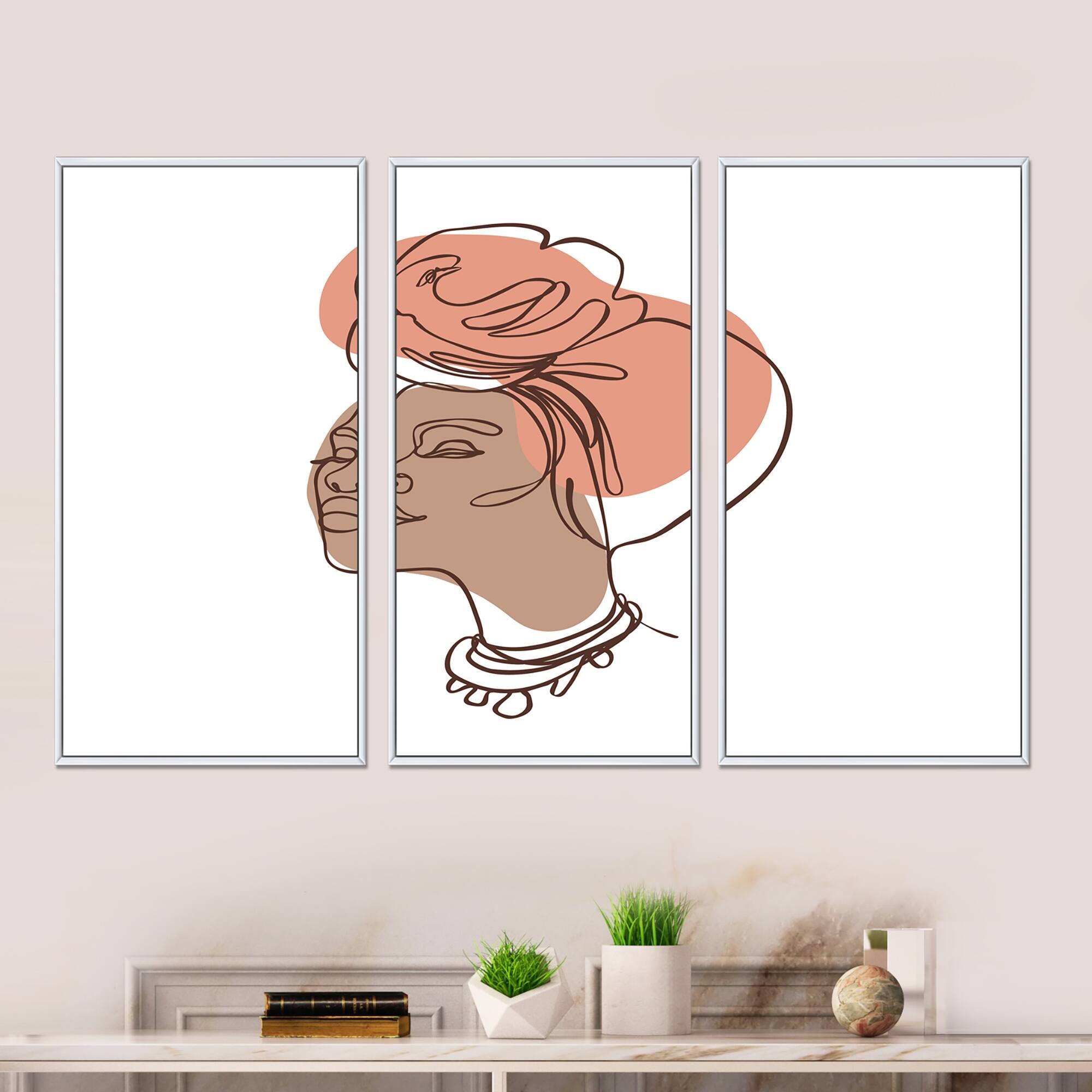Designart "One Line Portrait of African American Woman III" Modern Framed Canvas Wall Art Print Set of 3 - 4 Colors of Frames