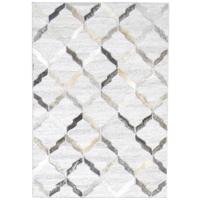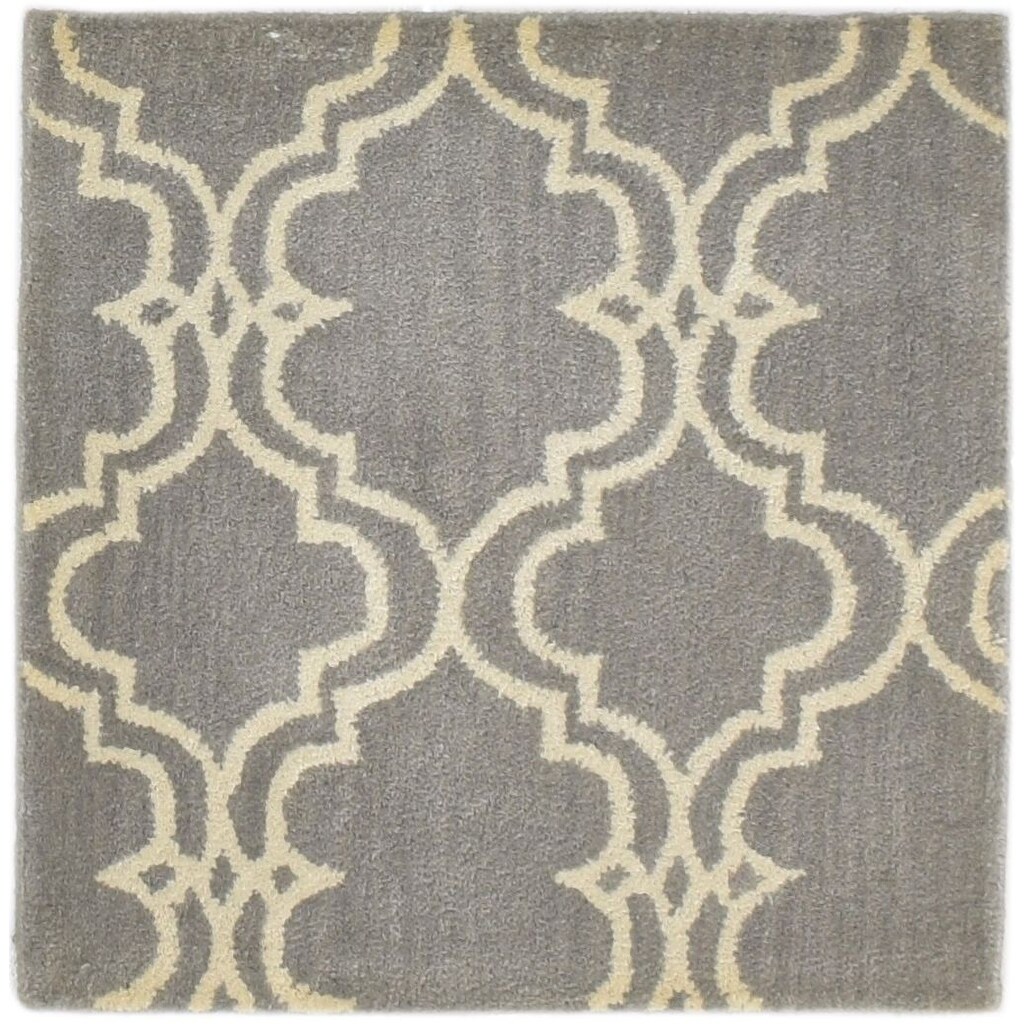 One of a Kind Hand-Tufted Modern & Contemporary 2' x 3' Trellis Wool Grey Rug - 2'2"x2'2"