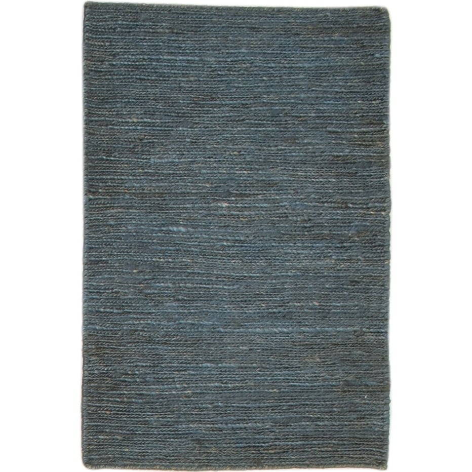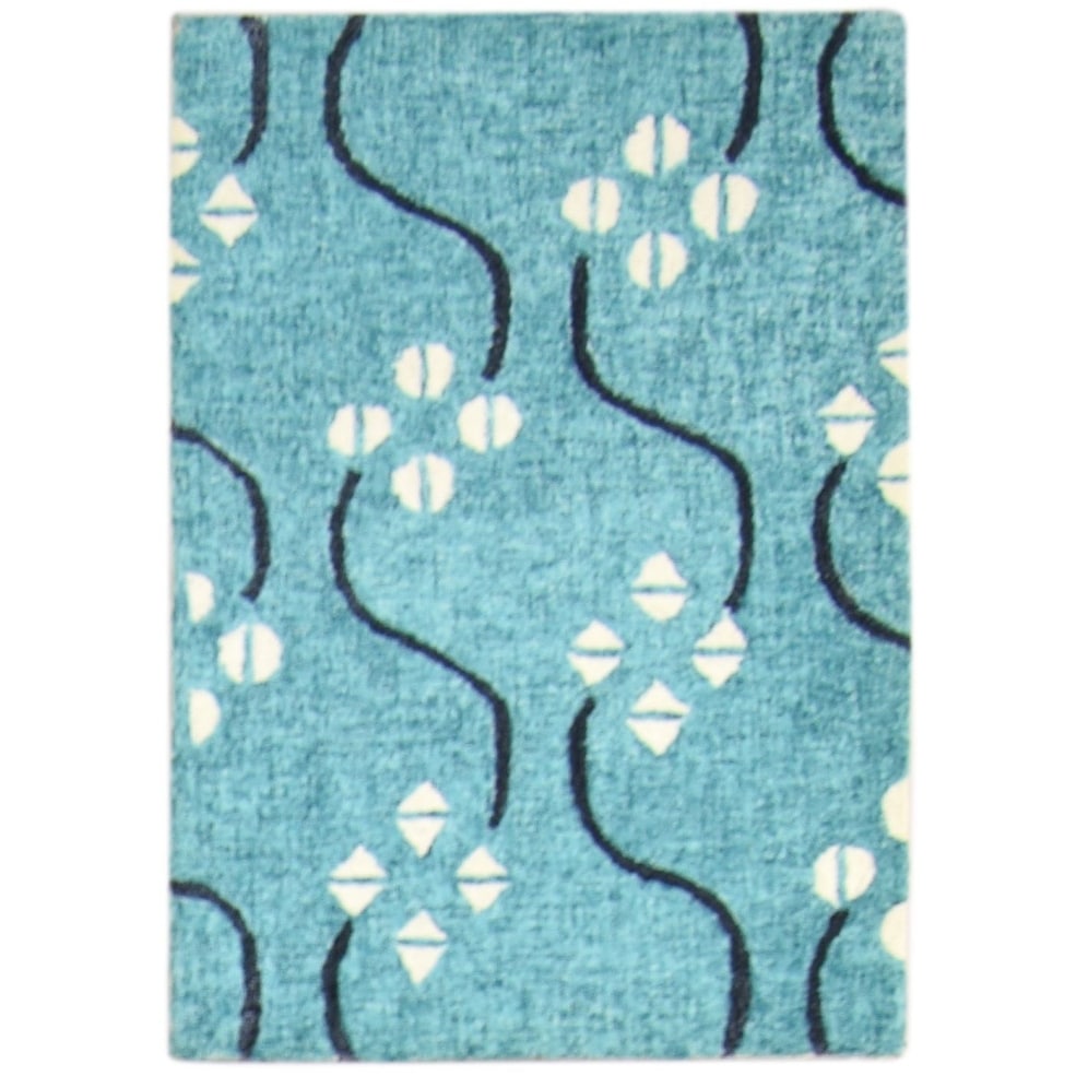 One of a Kind Hand-Tufted Modern 2' x 3' Trellis Wool Blue Rug - 2' x 3'