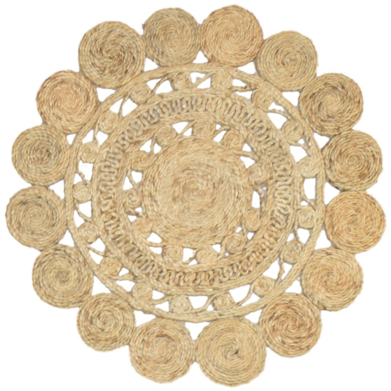 One of a Kind Hand-Woven Modern 2' x 3' Geometric Jute Beige Rug - 3' Round
