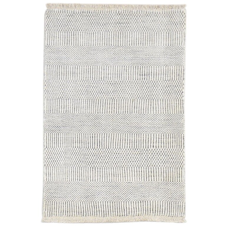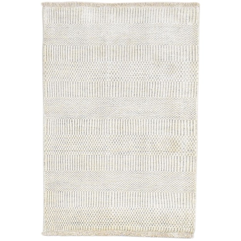 One of a Kind Hand-Knotted Modern 2' x 3' Trellis Wool Cream Rug - 2' x 3'