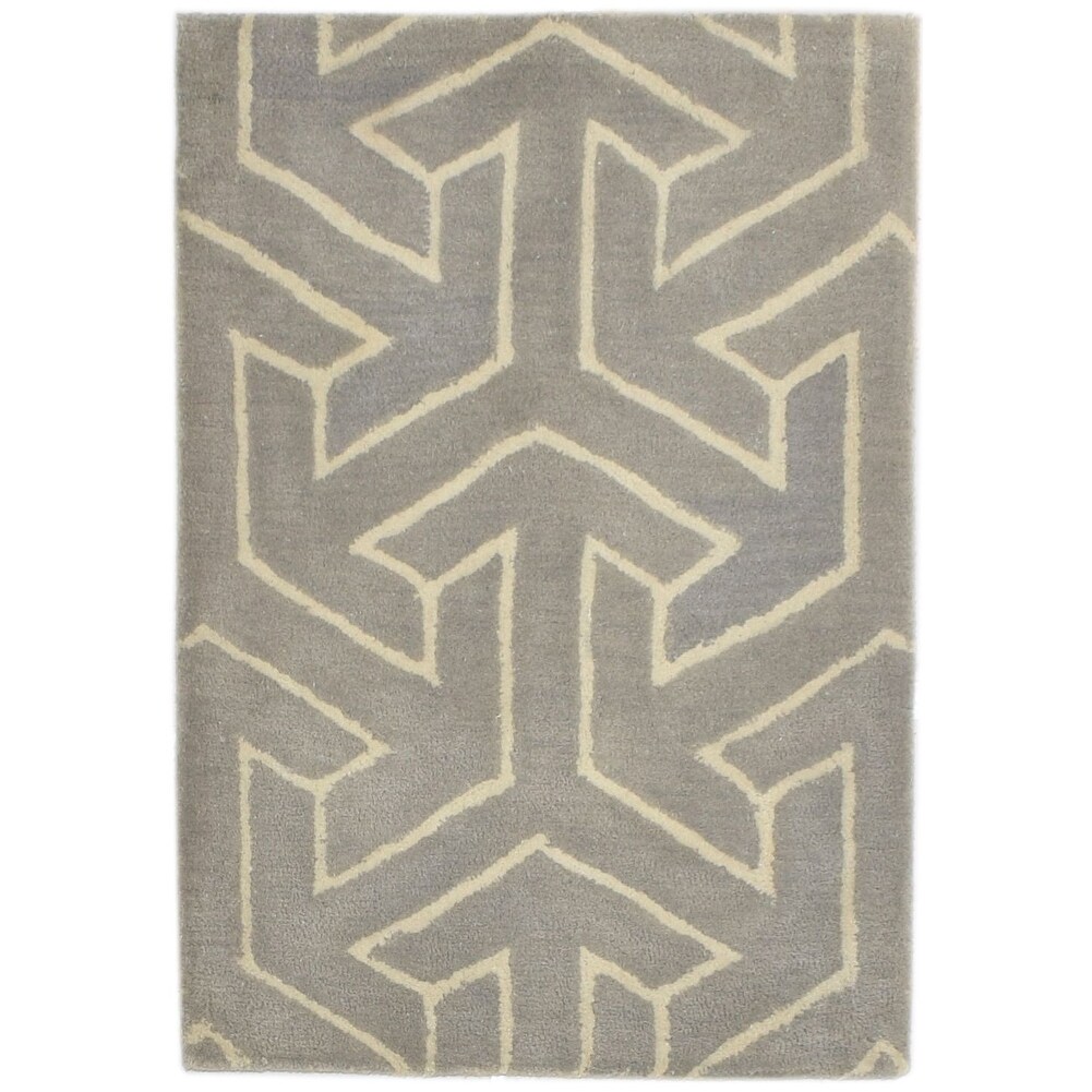 One of a Kind Hand-Tufted Modern & Contemporary 2' x 3' Geometric Wool Grey Rug - 2'0"x3'0"