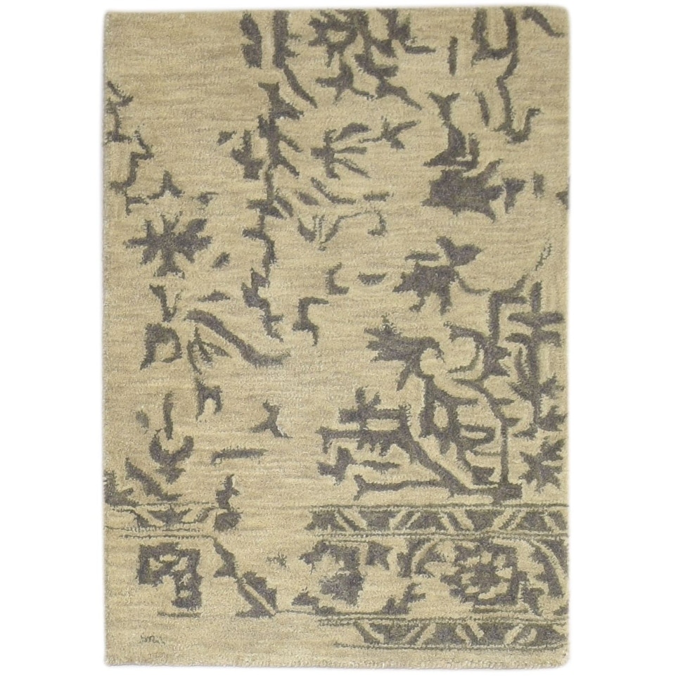 One of a Kind Hand-Tufted Modern 2' x 3' Oriental Wool Beige Rug - 2' x 3'