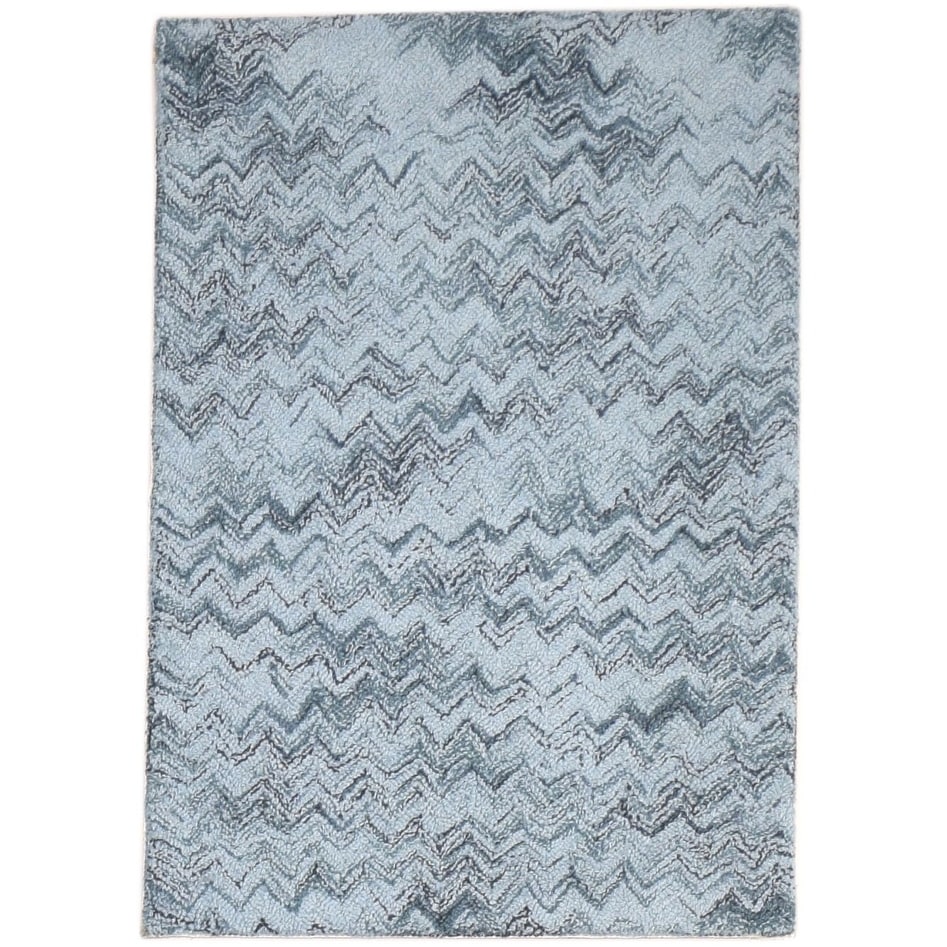One of a Kind Hand-Tufted Modern 2' x 3' Chevron Wool Blue Rug - 2' x 3'
