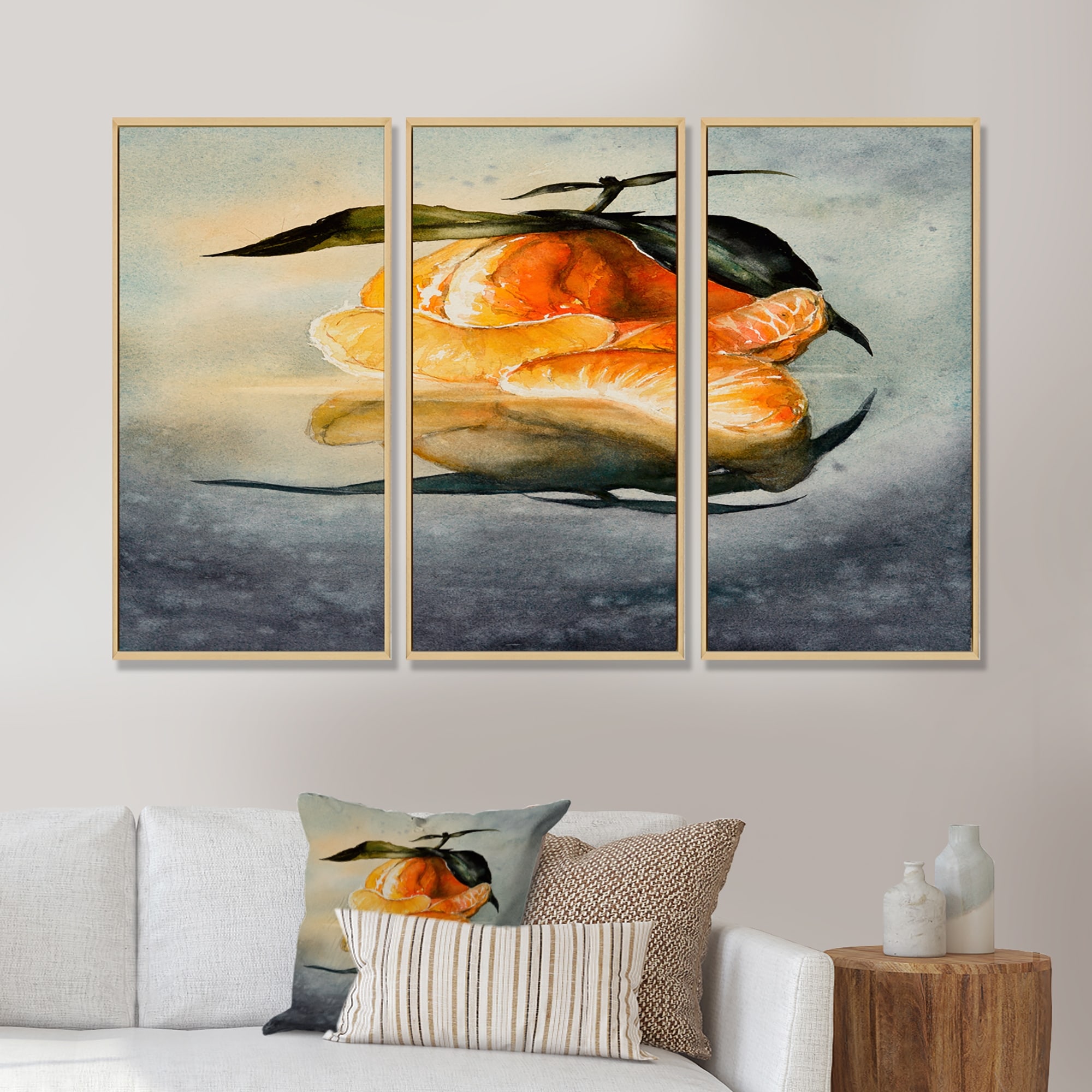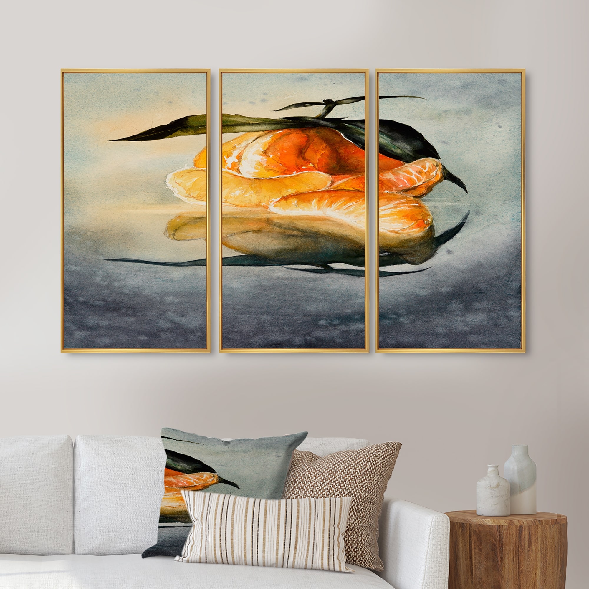 Designart "One Peeled Fresh Orange Mandarin With Green Leaves" Traditional Framed Art Set of 3 - 4 Colors of Frames
