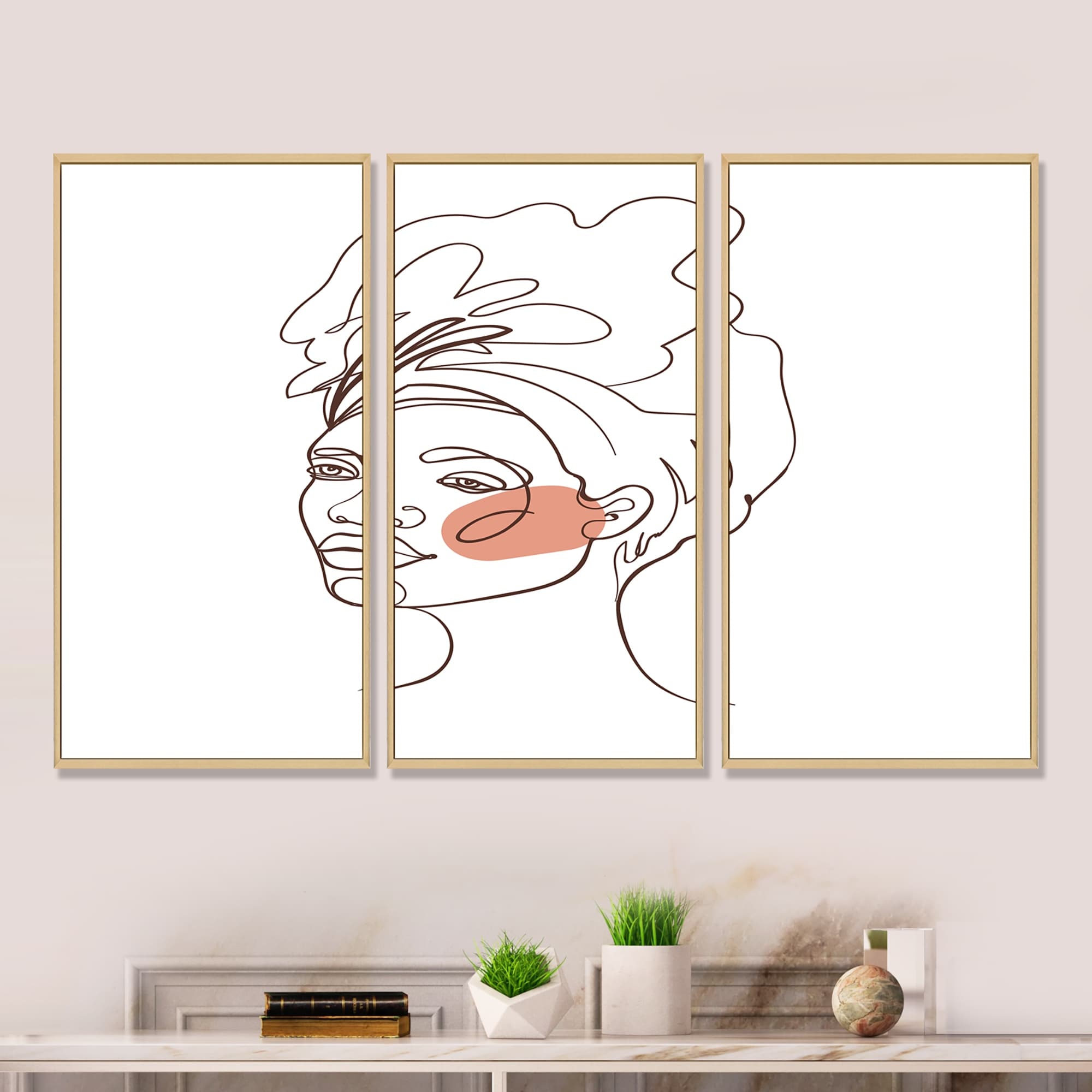 Designart "Minimal One Line Portrait of Female Face I" Modern Framed Art Prints Set of 3 - 4 Colors of Frames