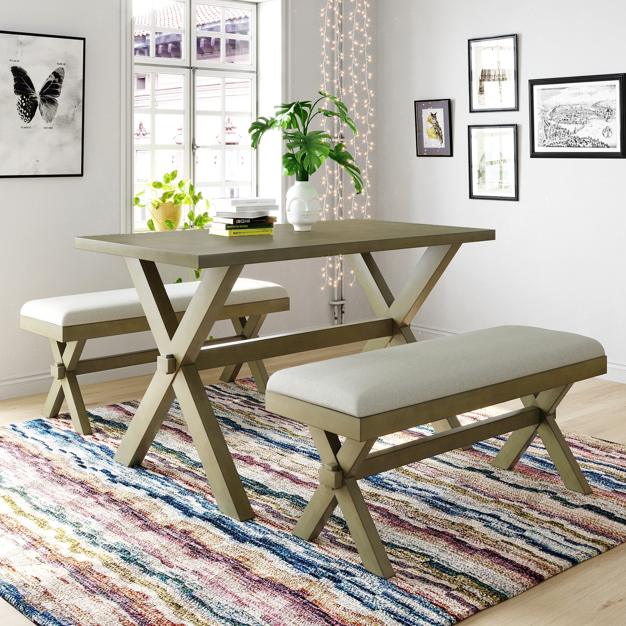 3-Piece Farmhouse Rustic Wood Dining Set with Upholstered Benches